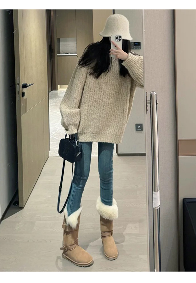아메리칸 레트로 하이웨이스트 작은 청바지 여성 2025 가을 겨울 털이 있는 몸매 가꾸기 슬림해 보이는 신축성 타이트 연필 바지