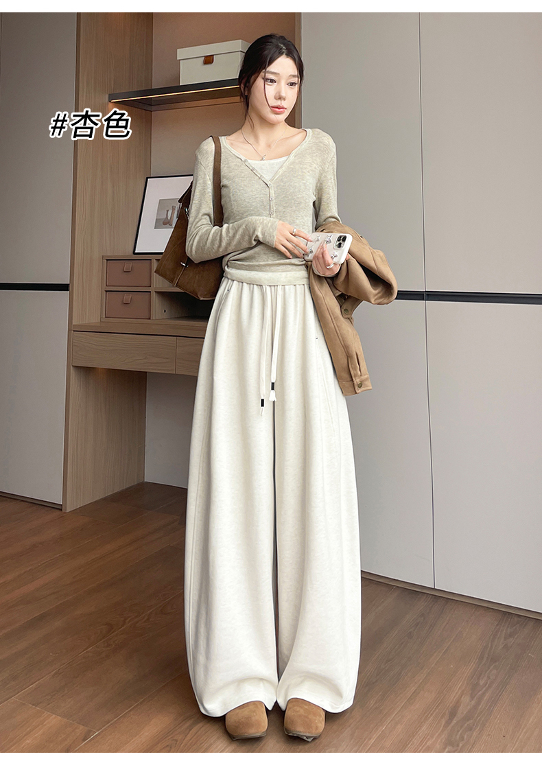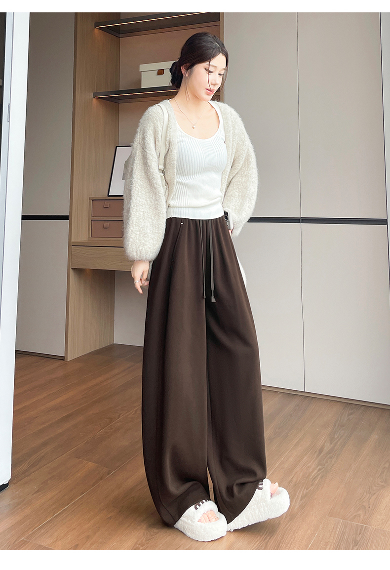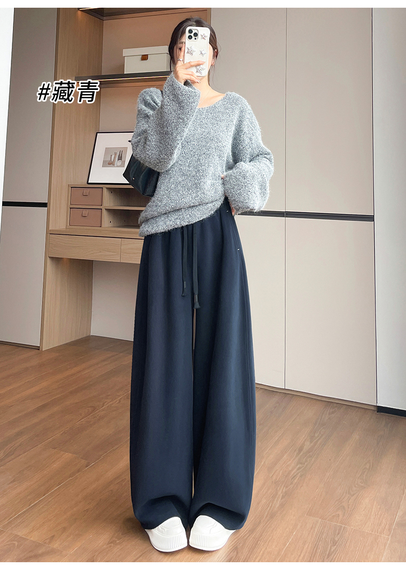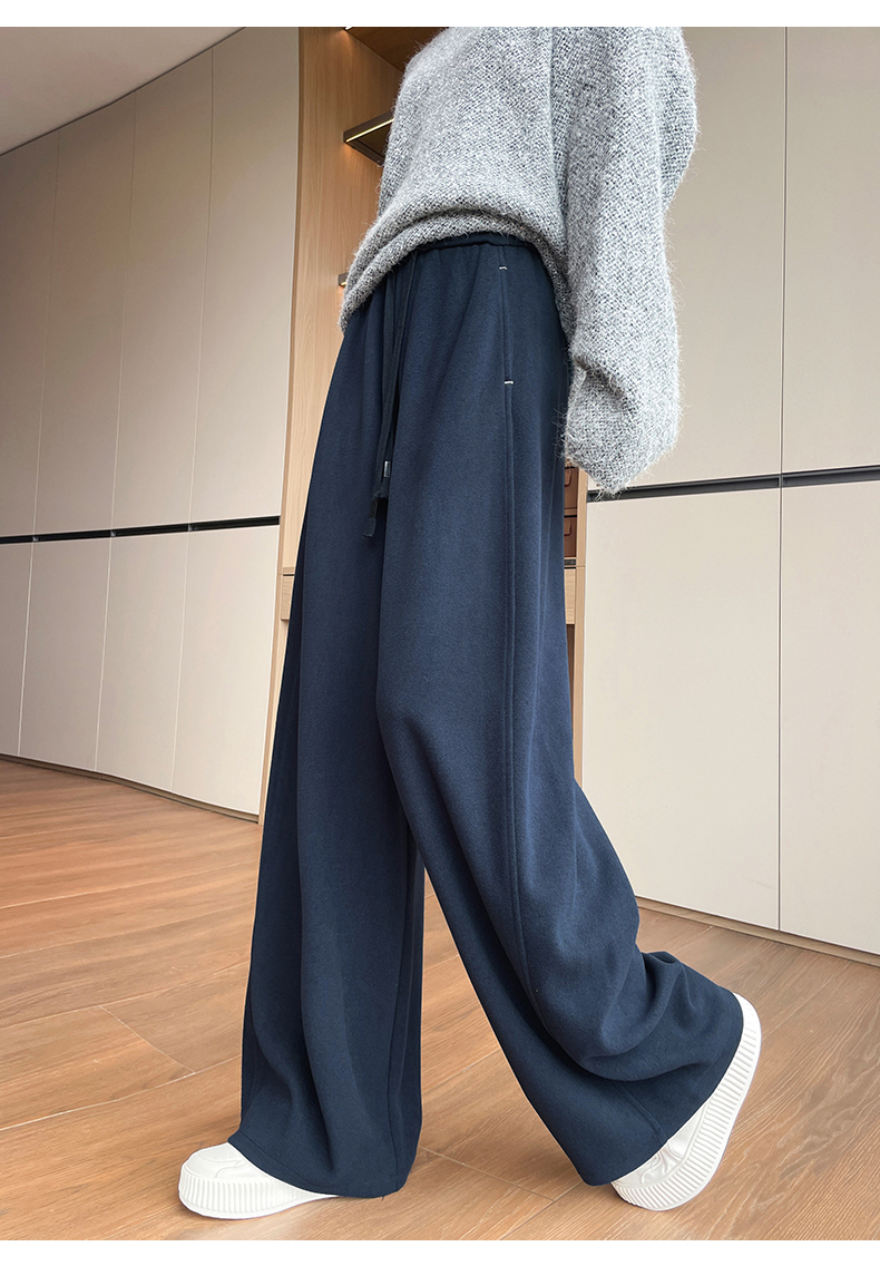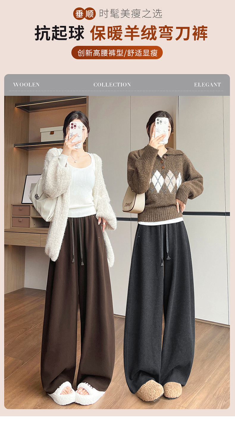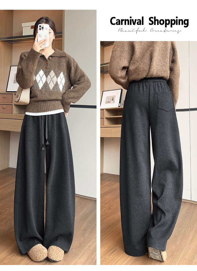 양모 모통이 칼 바지 여성 2025 가을 겨울 하이웨이스트 두꺼운 도루 센스 캐주얼 운동 느긋한 바람 스트레이트 넓은 다리 길이 바지
