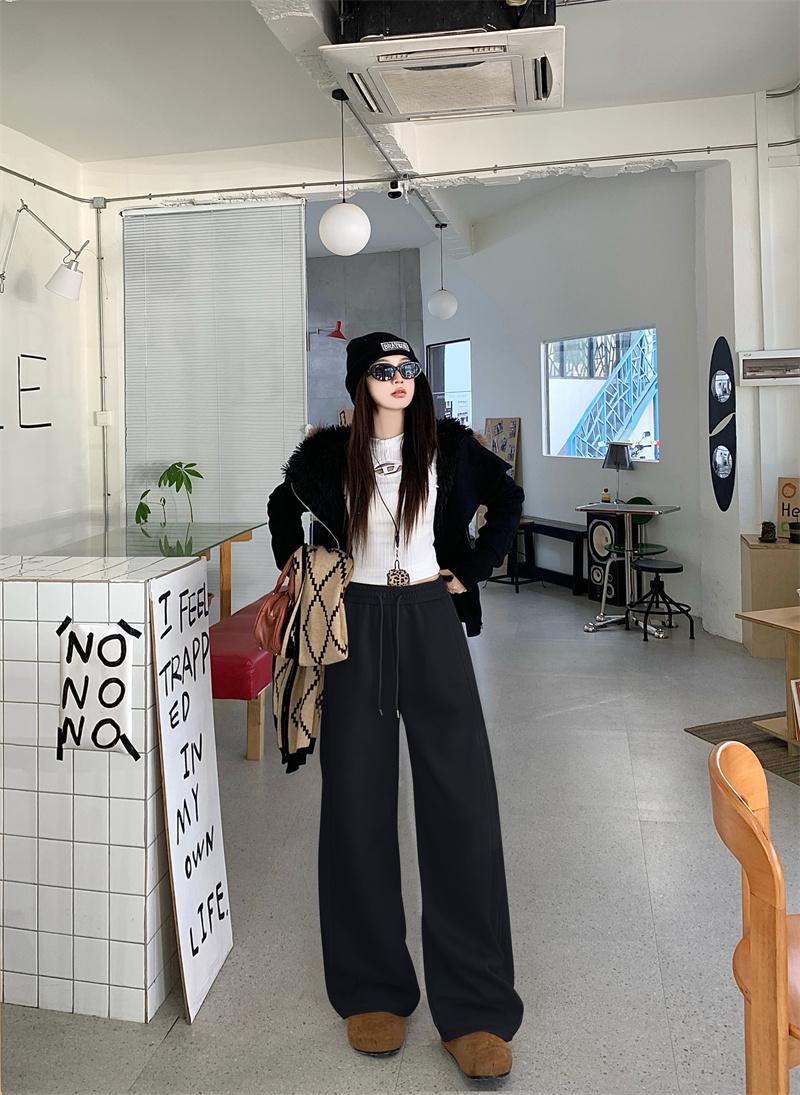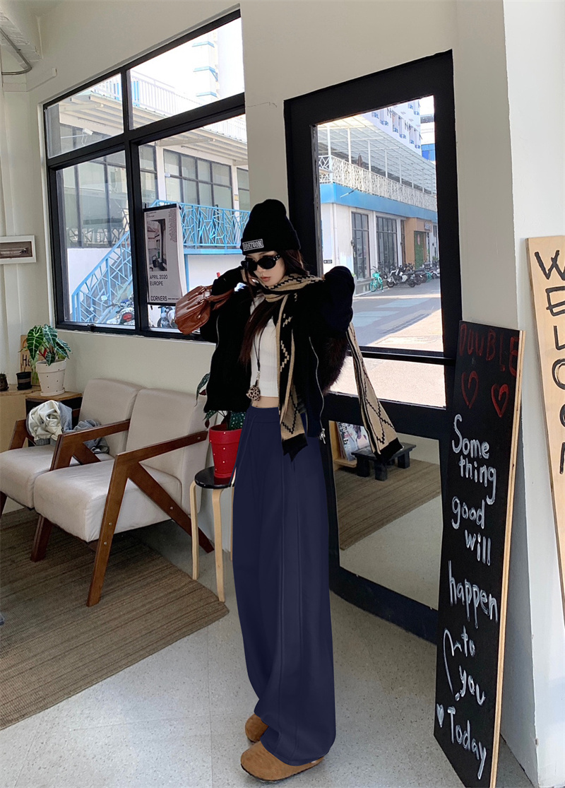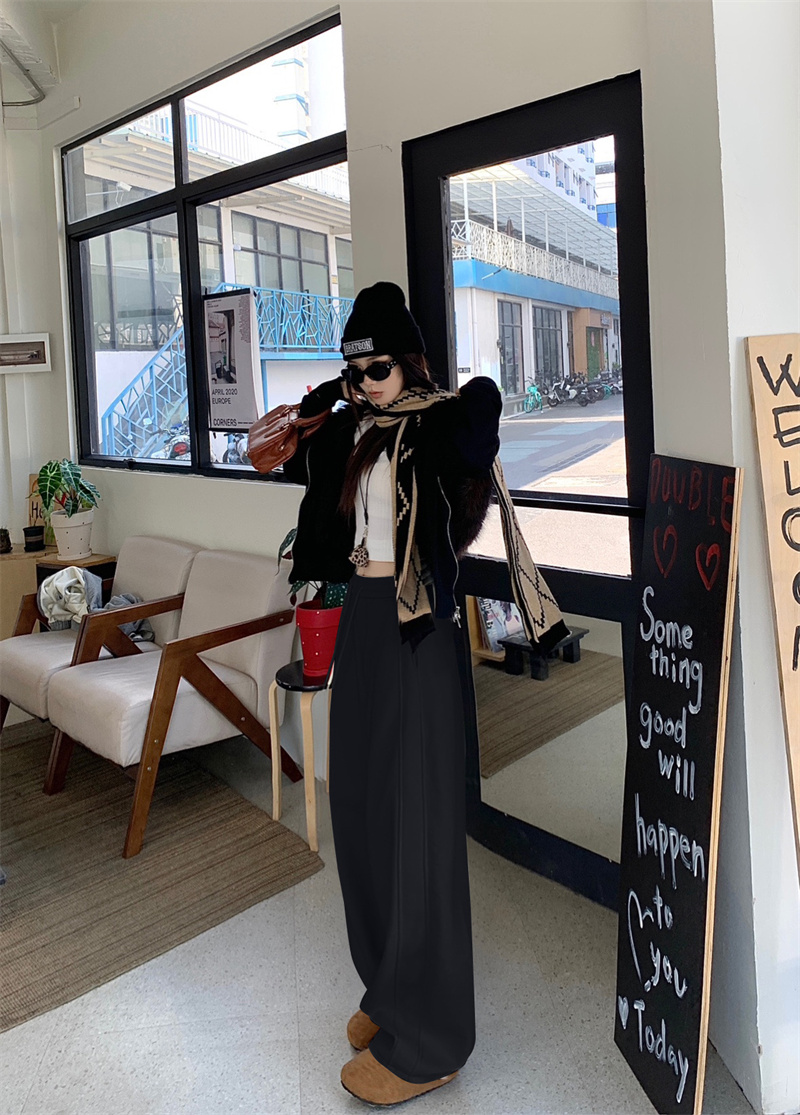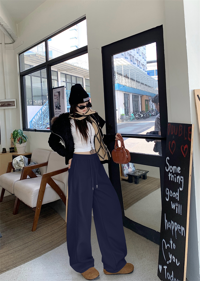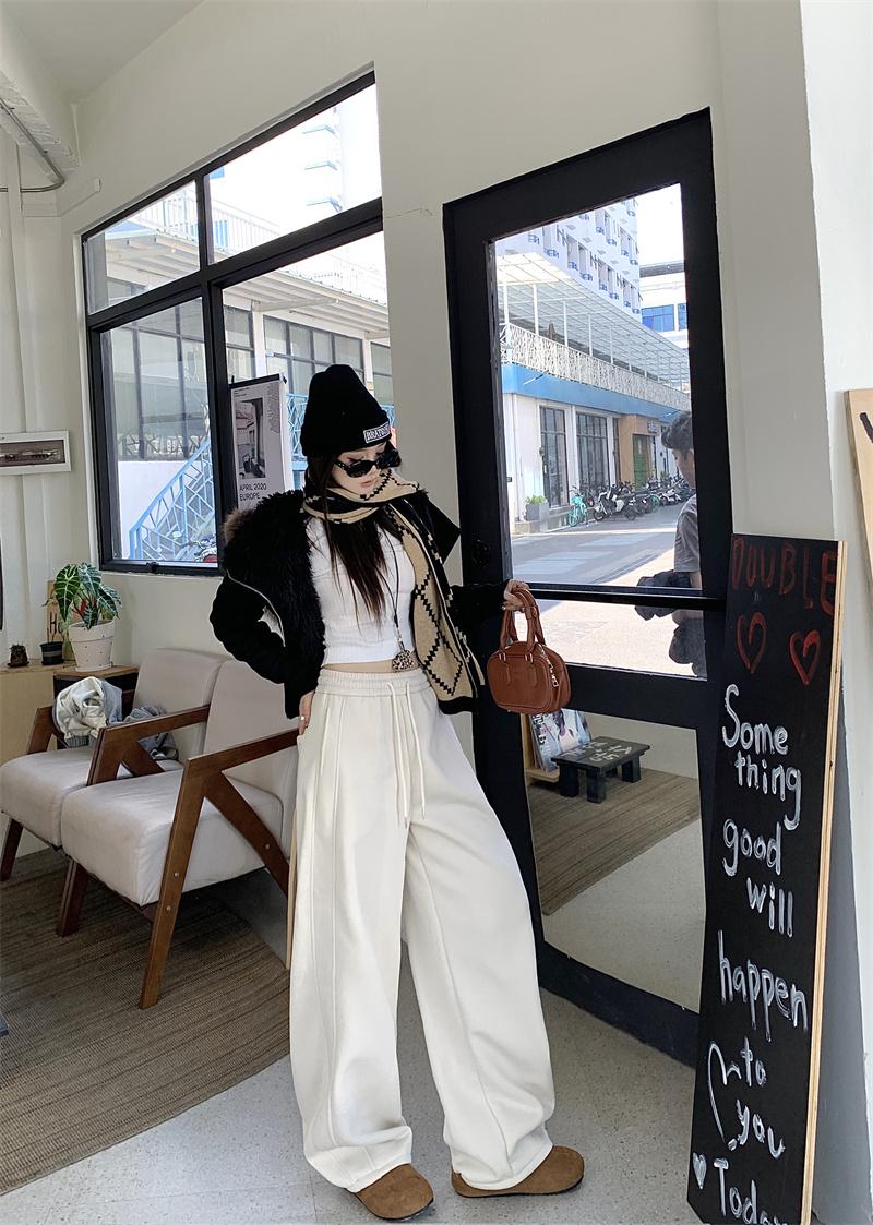 실사 털이 있는 웨이 바지 여성 가을 겨울 하이웨이스트 도루 센스 찹쌀 모통이 칼 바지 캐주얼 털이 있는 와이드 레그 팬츠