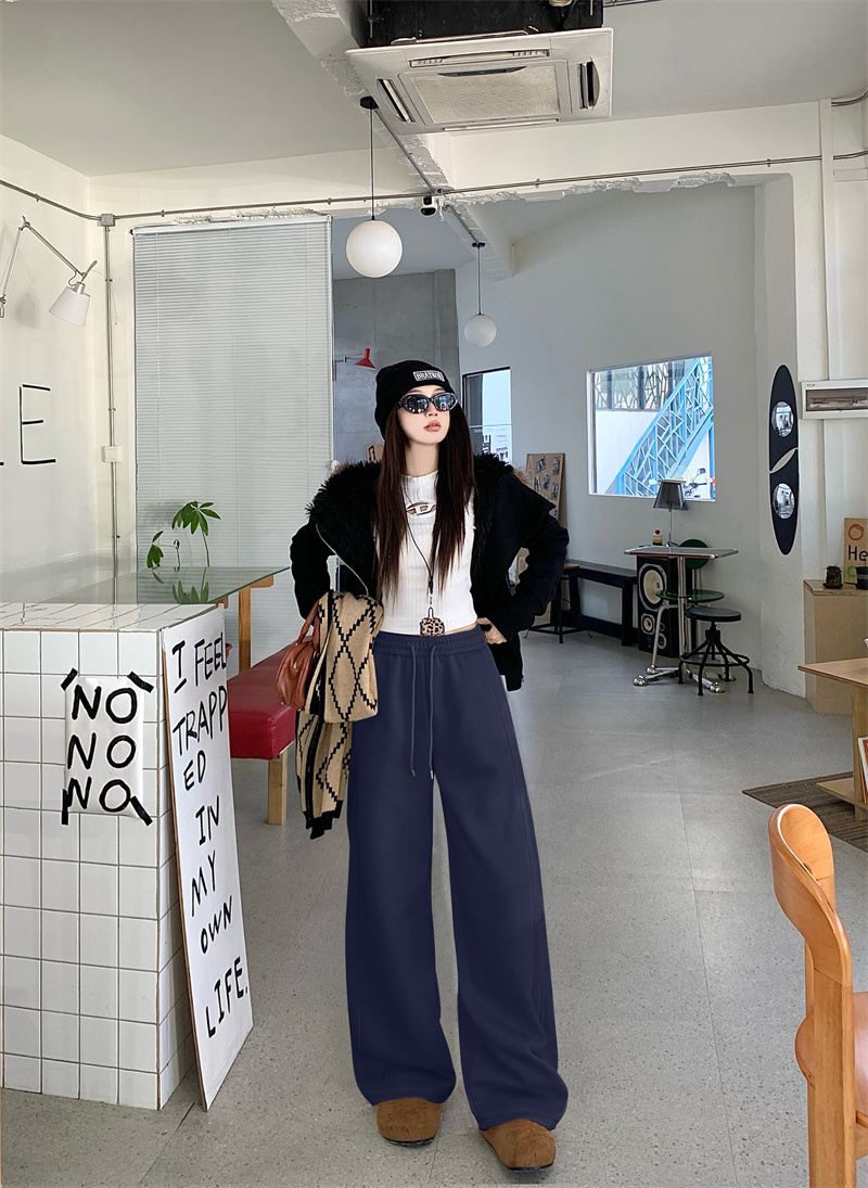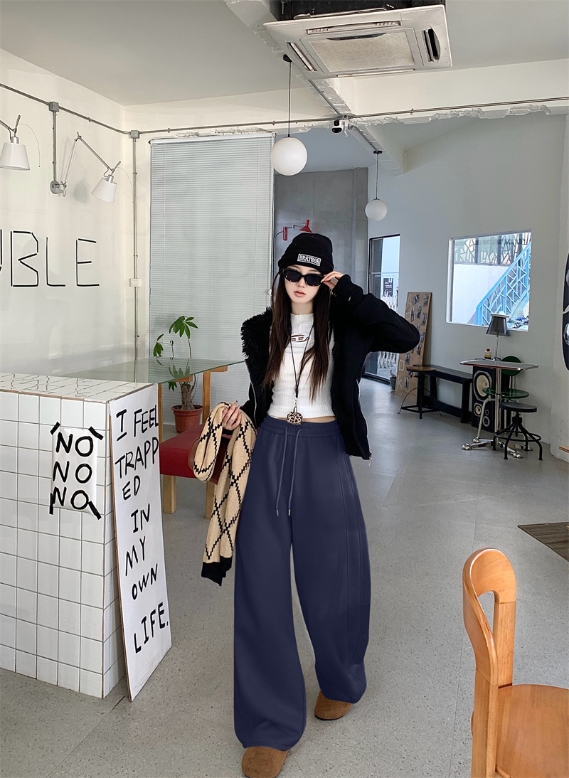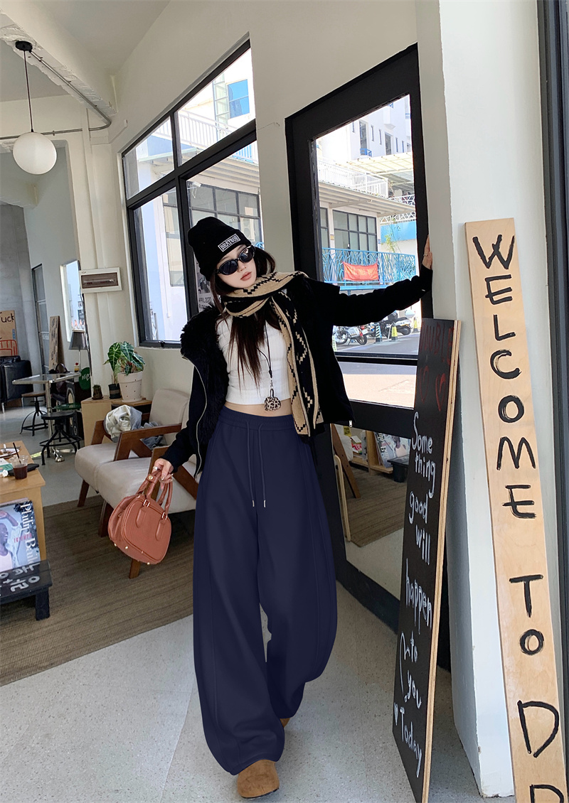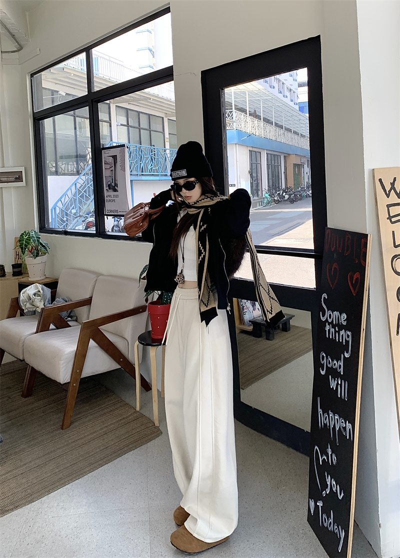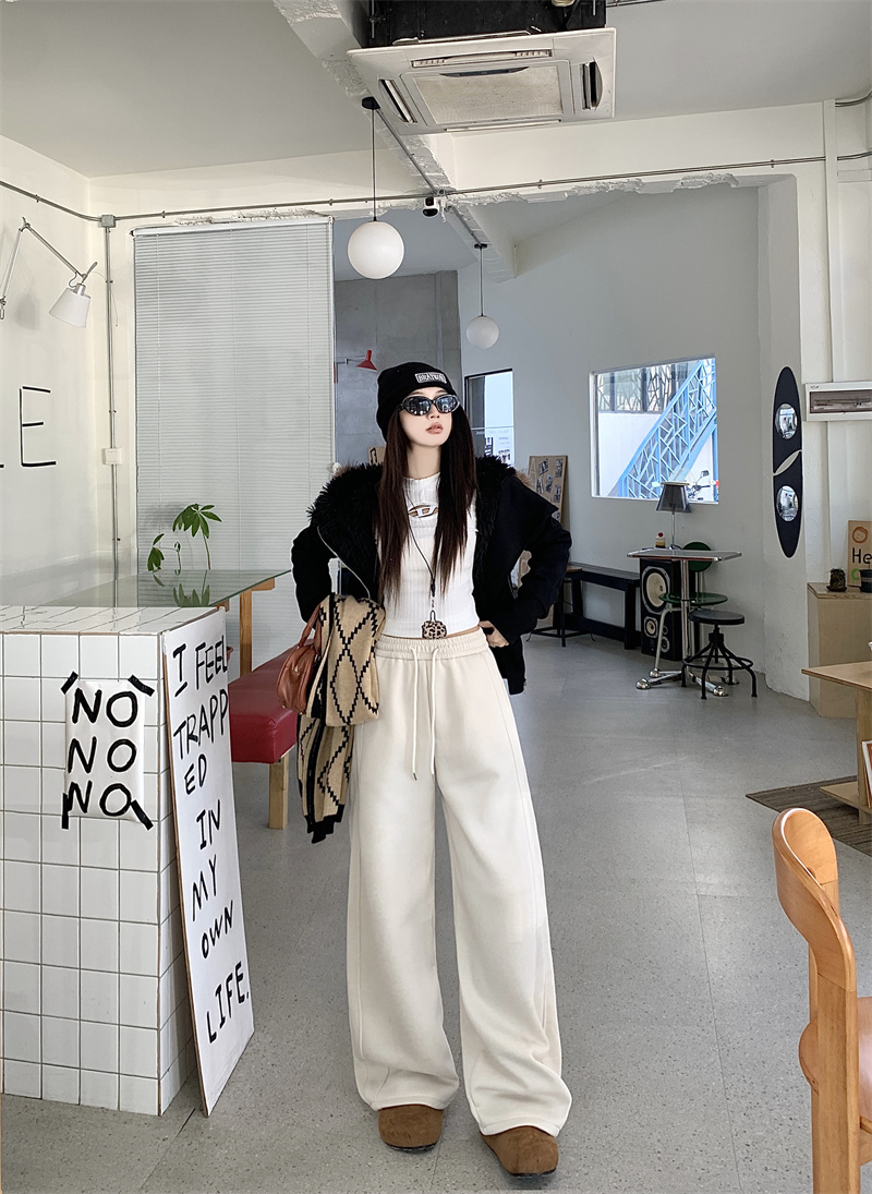 실사 털이 있는 웨이 바지 여성 가을 겨울 하이웨이스트 도루 센스 찹쌀 모통이 칼 바지 캐주얼 털이 있는 와이드 레그 팬츠