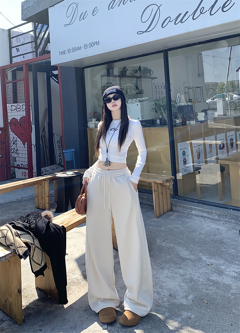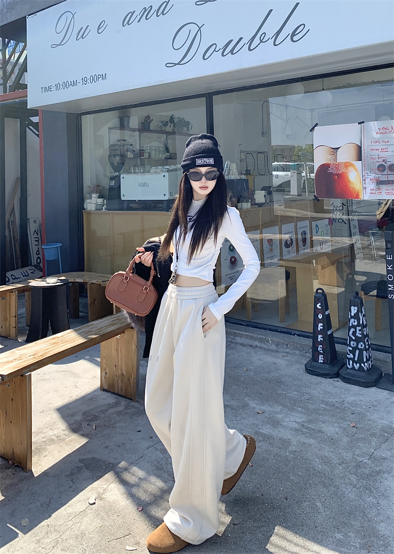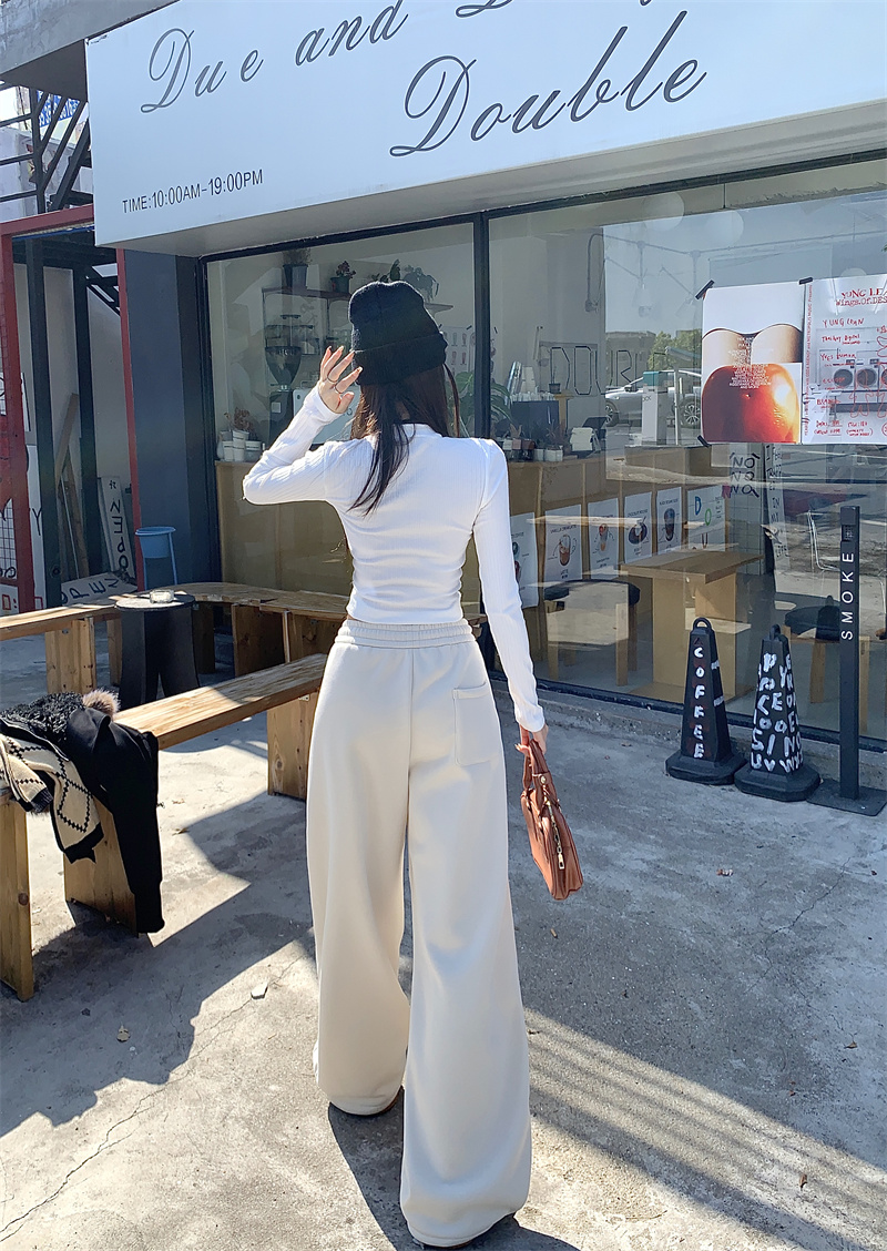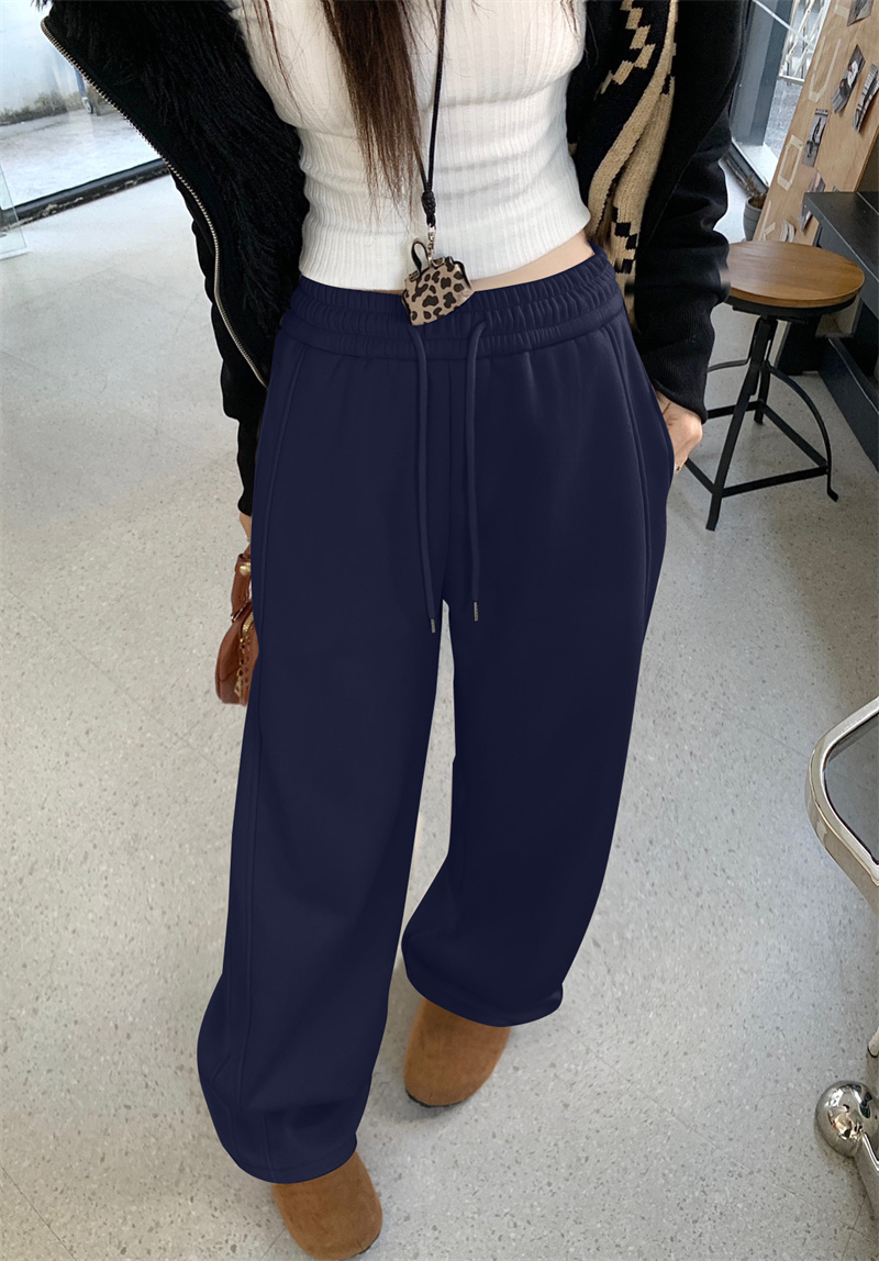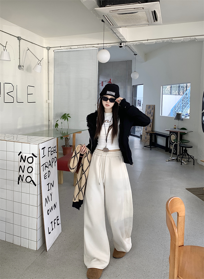 실사 털이 있는 웨이 바지 여성 가을 겨울 하이웨이스트 도루 센스 찹쌀 모통이 칼 바지 캐주얼 털이 있는 와이드 레그 팬츠