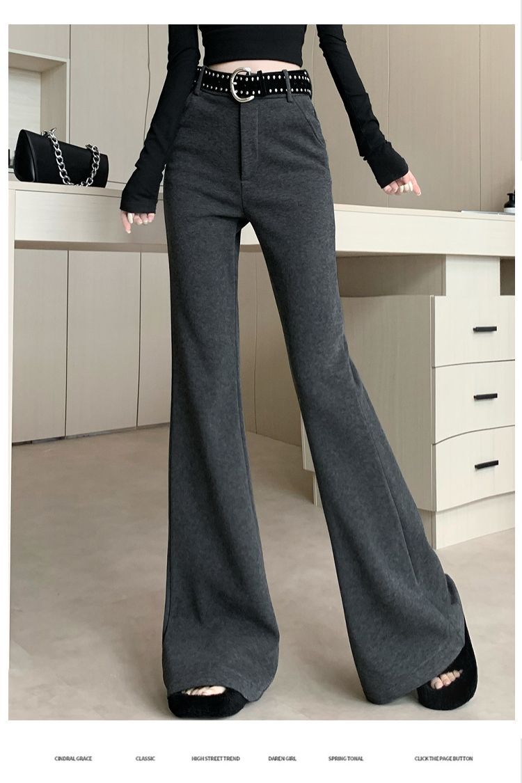 가을 겨울 털이 있고 두꺼운 부츠컷 바지 여성 2025 새로운 좁은 에디션 도루 센스 찹쌀 바지 슈퍼 화재 패션 고급 캐주얼 바지