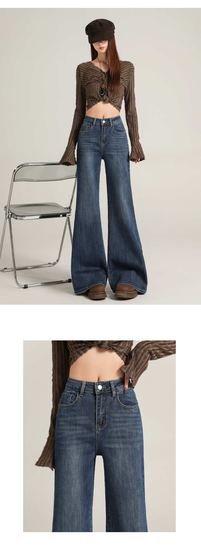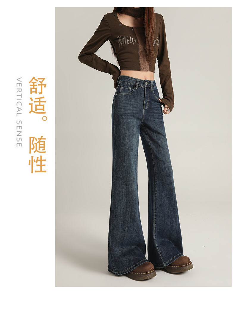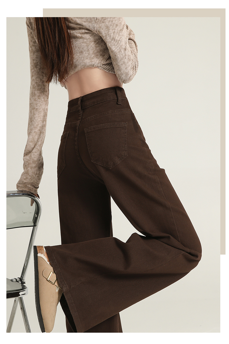 커피 색상 털이 있는 부츠컷 청바지 여성 가을 겨울 새로운 레트로 슬림해 보이는 하이웨이스트 아니요 막대기 다리 루즈핏 나팔 호스 슈 바지