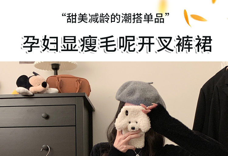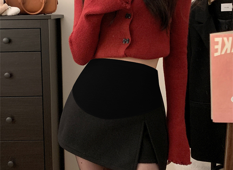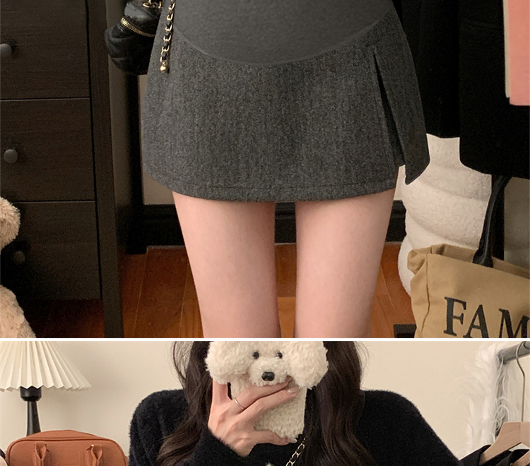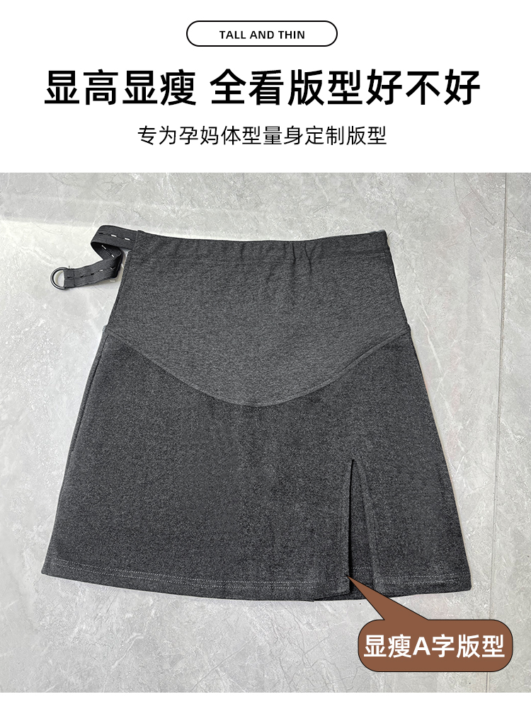 지금 임산부 봄 새로운 모직 다용도 반신 스커트 가을 겨울 한 마디 회색 타이트 스커트 바지 슬림해 보이는 복부 지지 미니 스커트