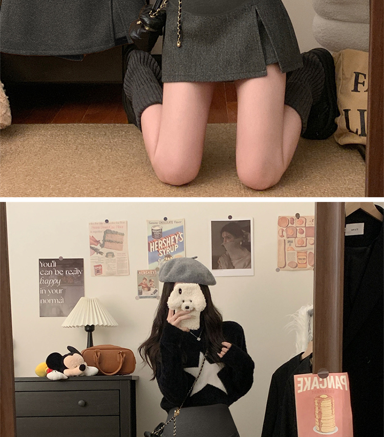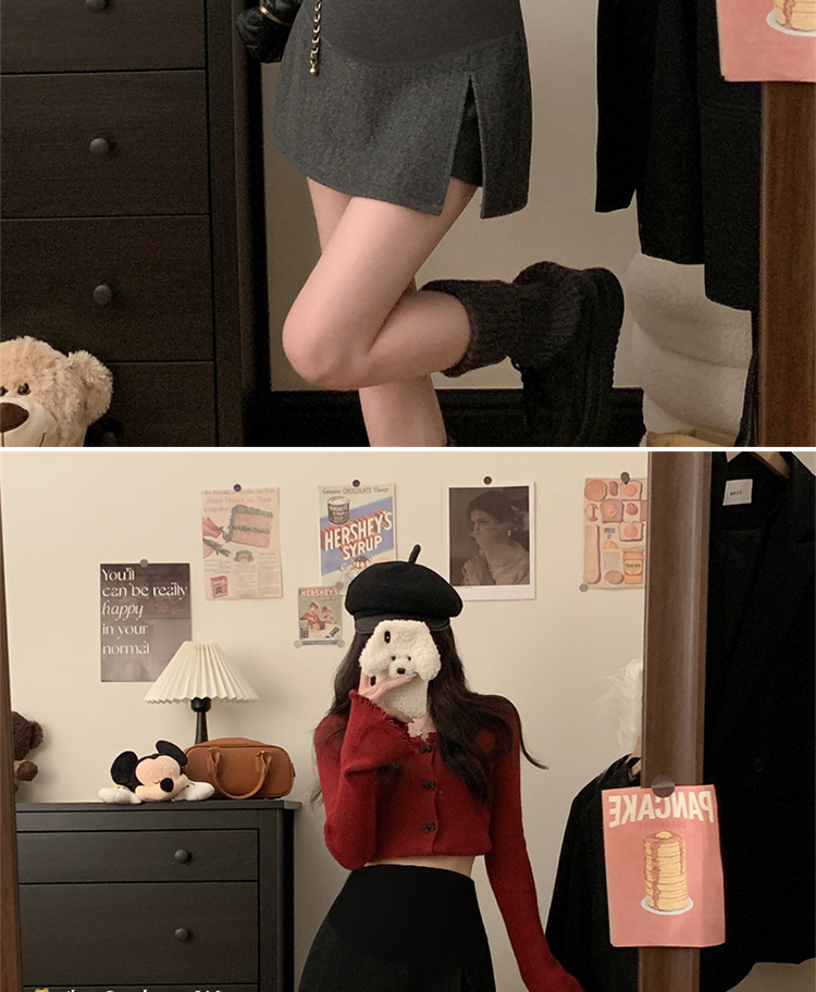 제품 번호8939#|하이 퀄리티 모직 스플릿 배꼽 치마