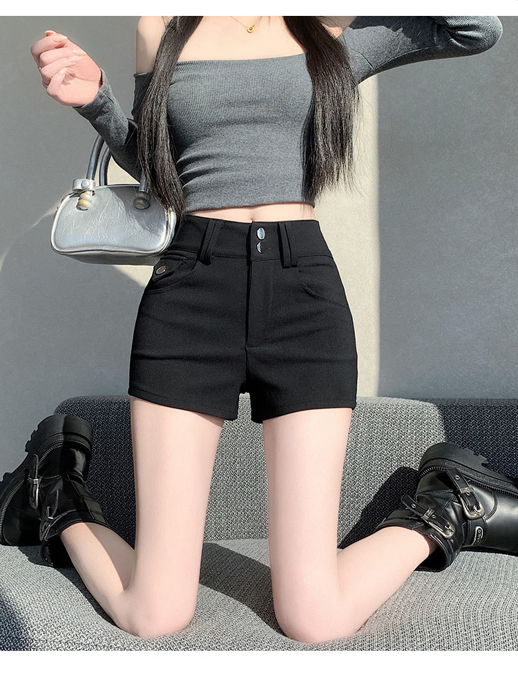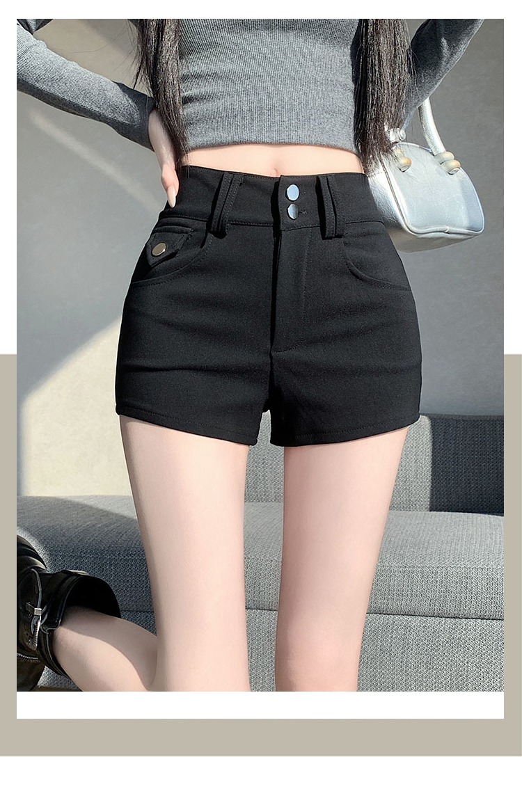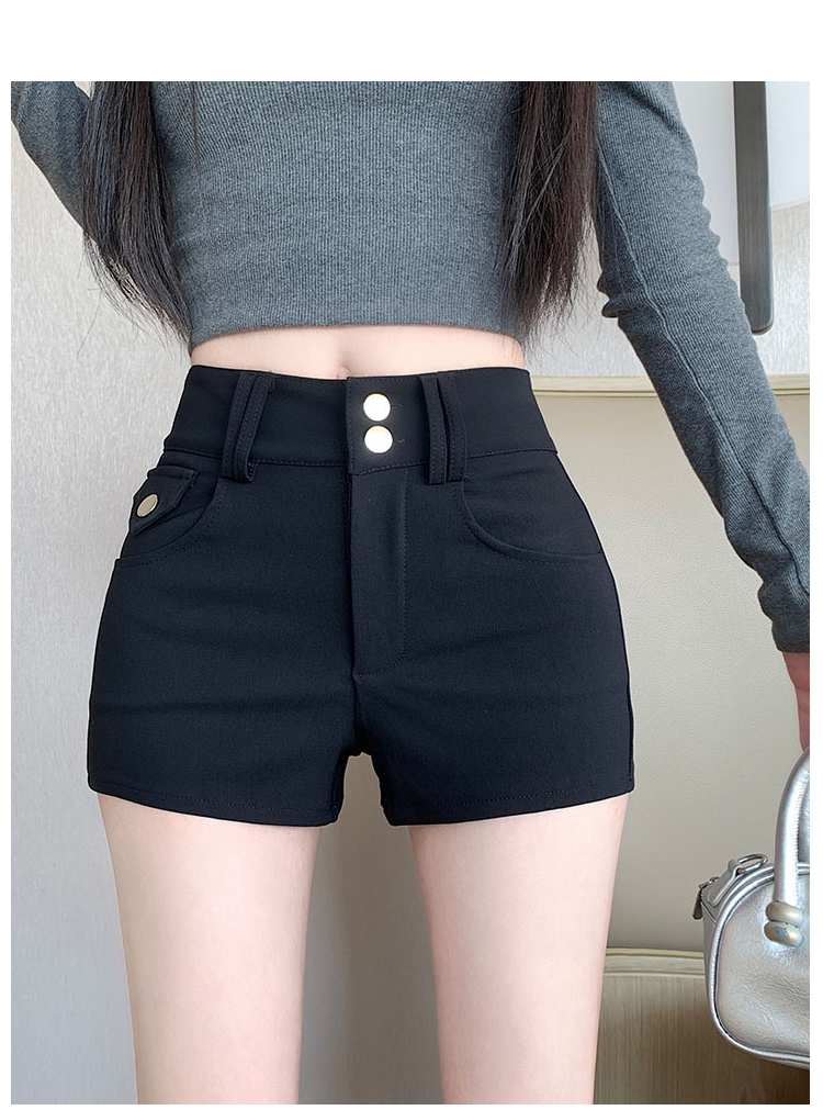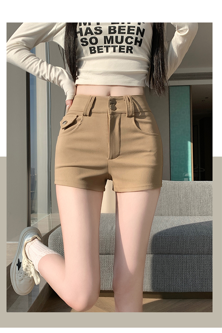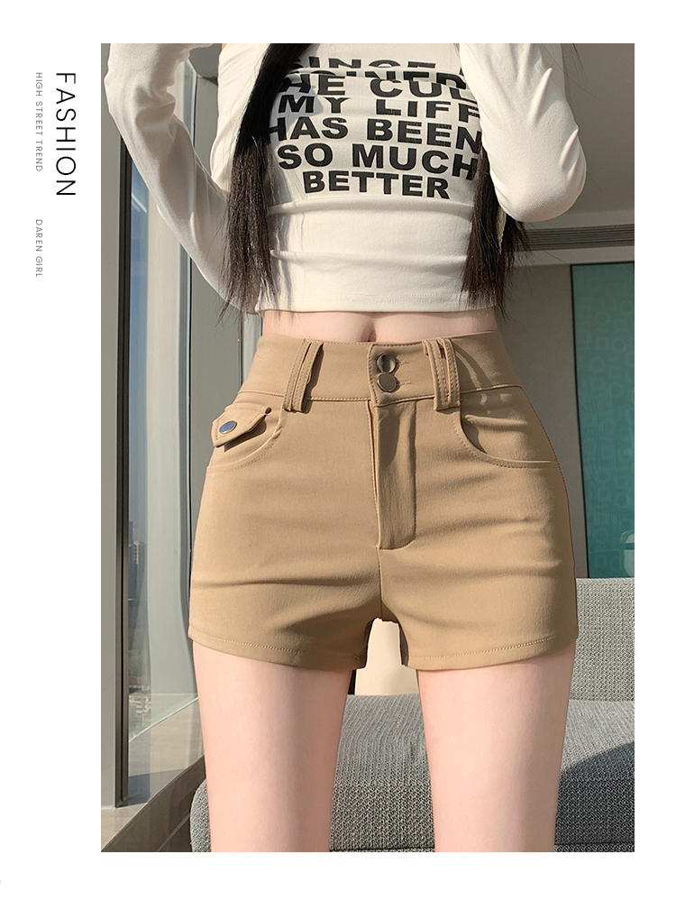 실사 반바지 여성 2026 봄 여름 새로운 하이웨이스트 몸매 가꾸기 슬림해 보이는 더블 버클 신축성 타이트 스커트 신축성 핫 바지