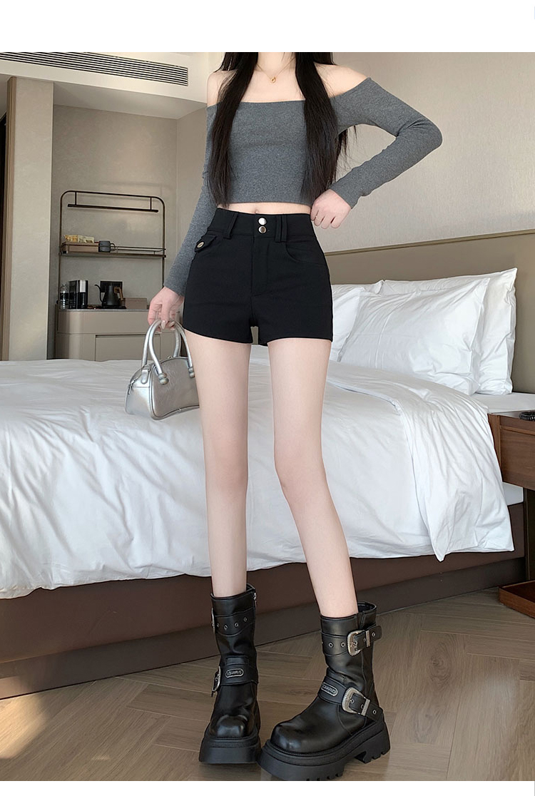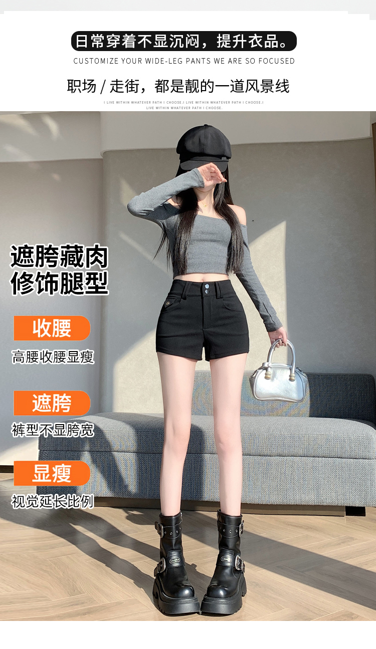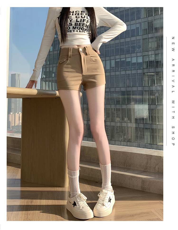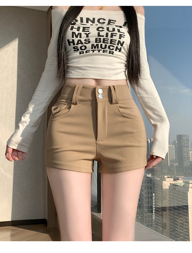 실사 반바지 여성 2026 봄 여름 새로운 하이웨이스트 몸매 가꾸기 슬림해 보이는 더블 버클 신축성 타이트 스커트 신축성 핫 바지
