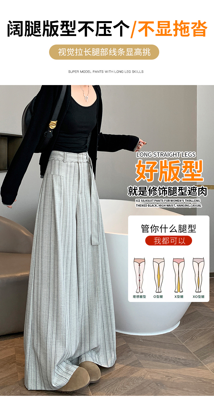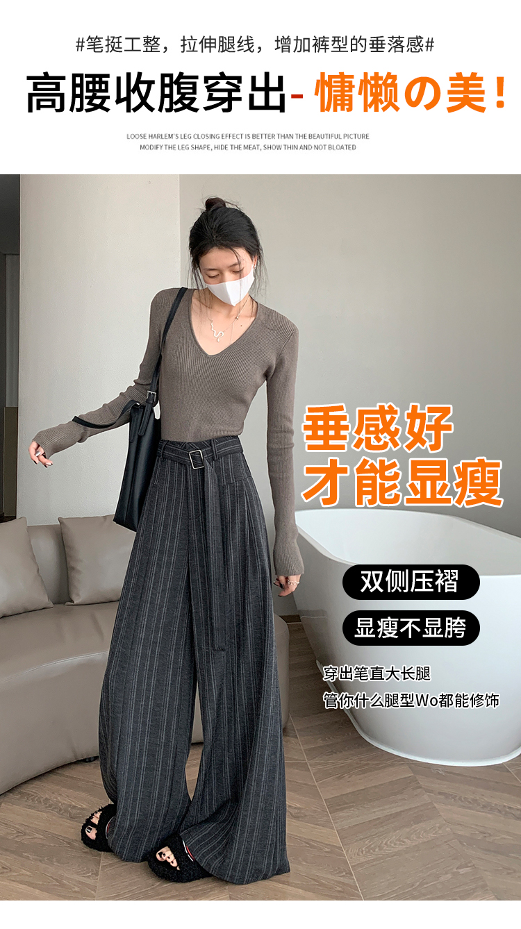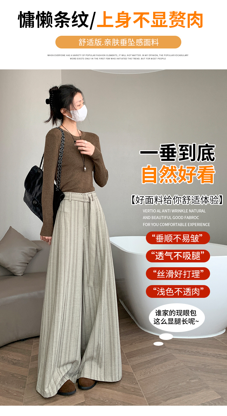 실사 스트라이프 넓은 다리 정장 바지 여성 2026 봄 하이웨이스트 슬림해 보이는 다용도 도루 센스 바닥 청소 스트레이트 캐주얼 바지
