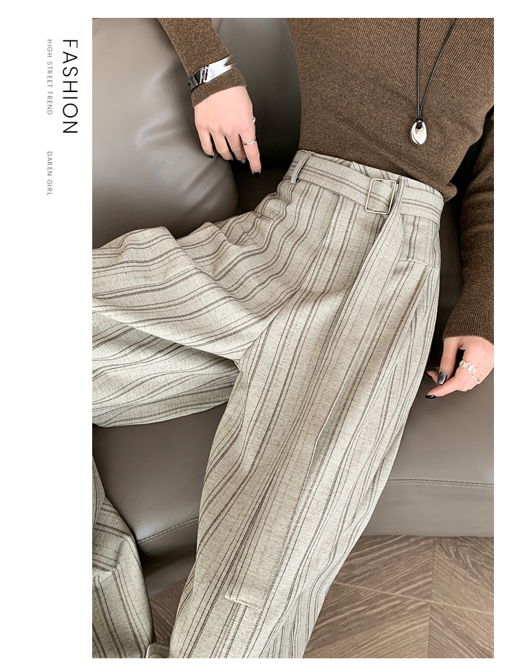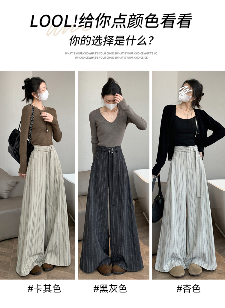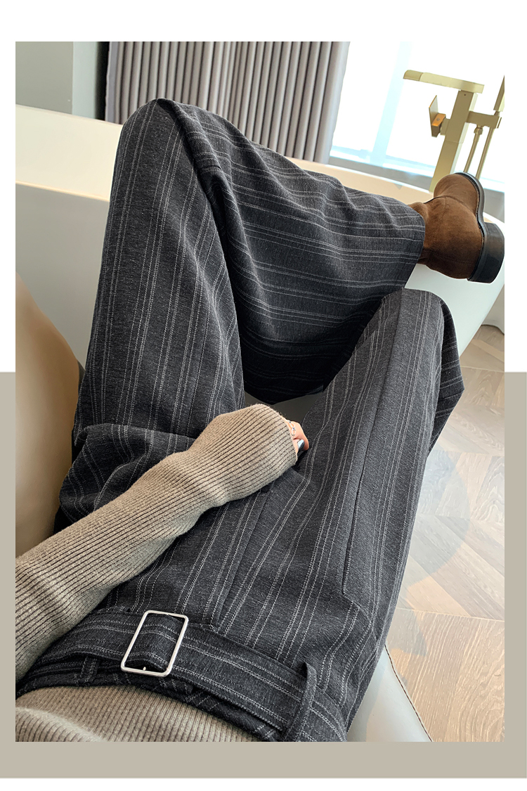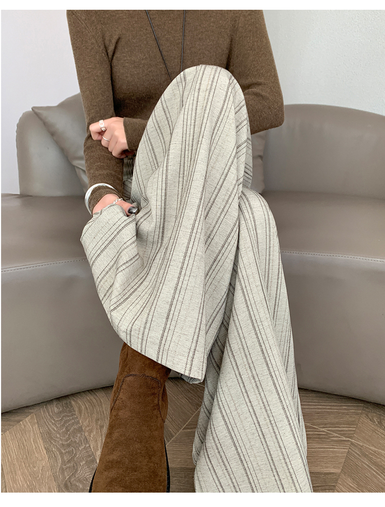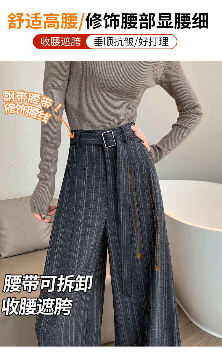 실사 스트라이프 넓은 다리 정장 바지 여성 2026 봄 하이웨이스트 슬림해 보이는 다용도 도루 센스 바닥 청소 스트레이트 캐주얼 바지