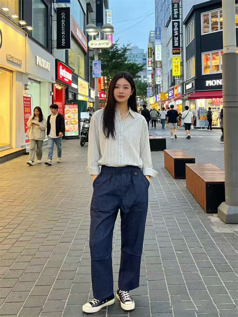 청바지 한 부서 루즈핏 하이웨이스트 슬림해 보이는 출퇴근 스트레이트 긴 바지 2026 여름 새로운 캐주얼 바지