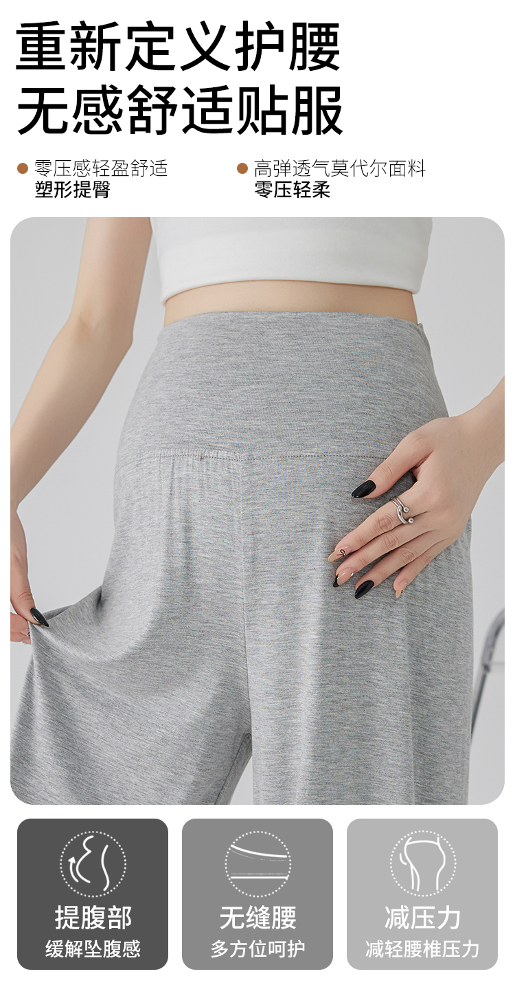 임산부 바지 여름 얼음 실크 모달 외출용 없음 복부 지지 와이드 레그 팬츠 긴 바지