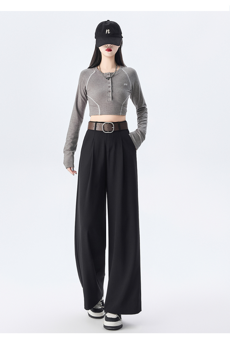 검정색 정장 9 포인트 와이드 레깅스 바지 2026 봄 여름 하이웨이스트 슬림해 보이는 고급 센스 도루 센스 패션 캐주얼 롱 바지