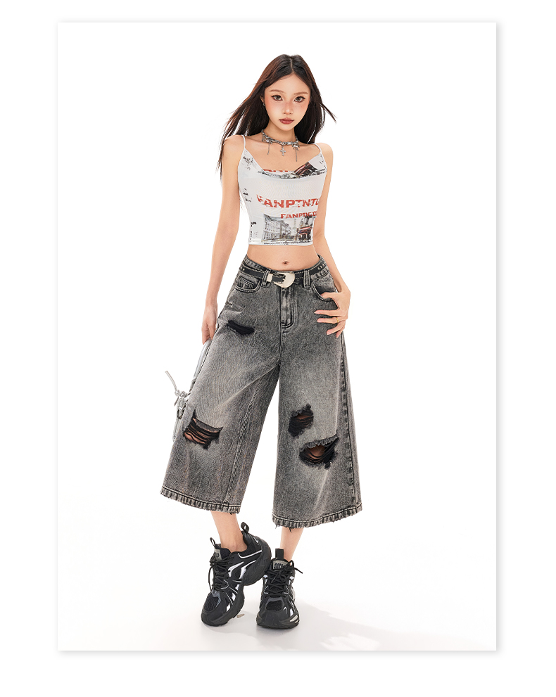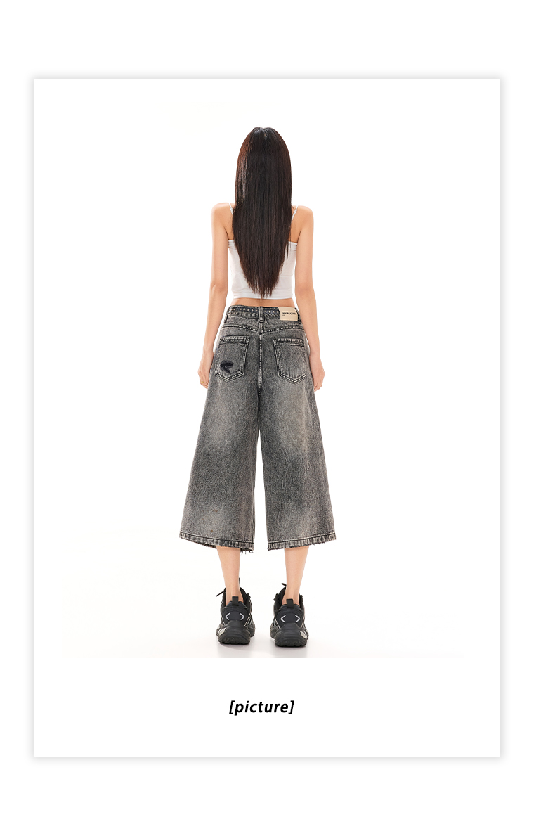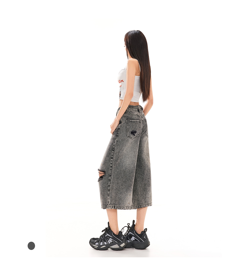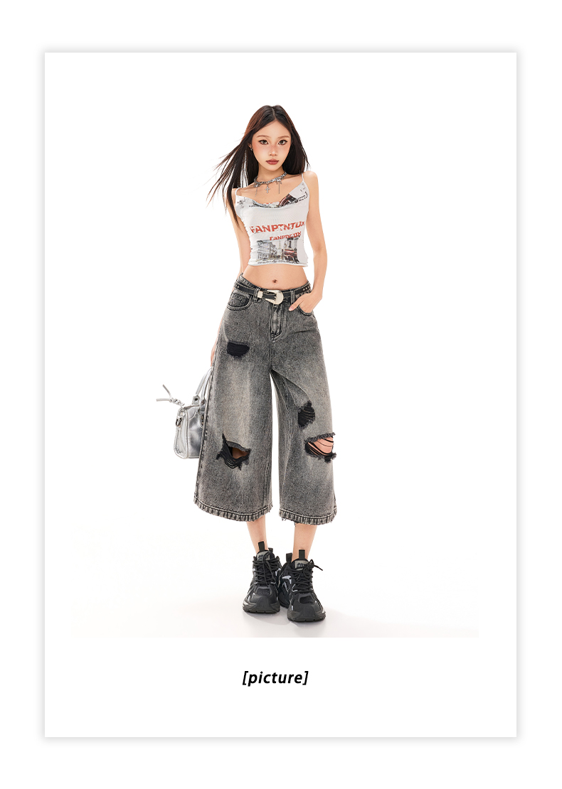 실사 26 여름 캐주얼 디자인 센스 찢어진 부분 청바지 여성 패션 트렌드 다용도 루즈핏 거친 가장자리 7 점 바지