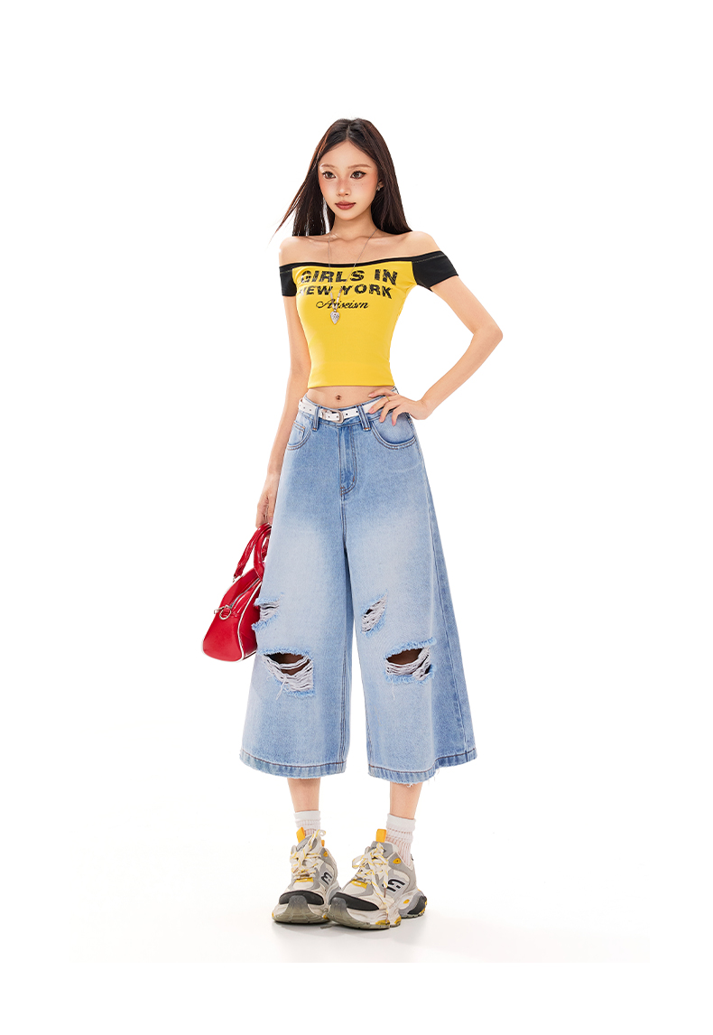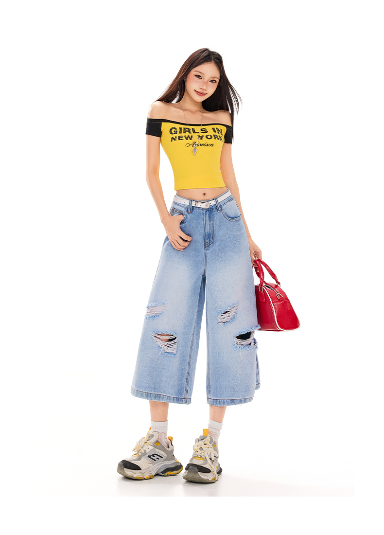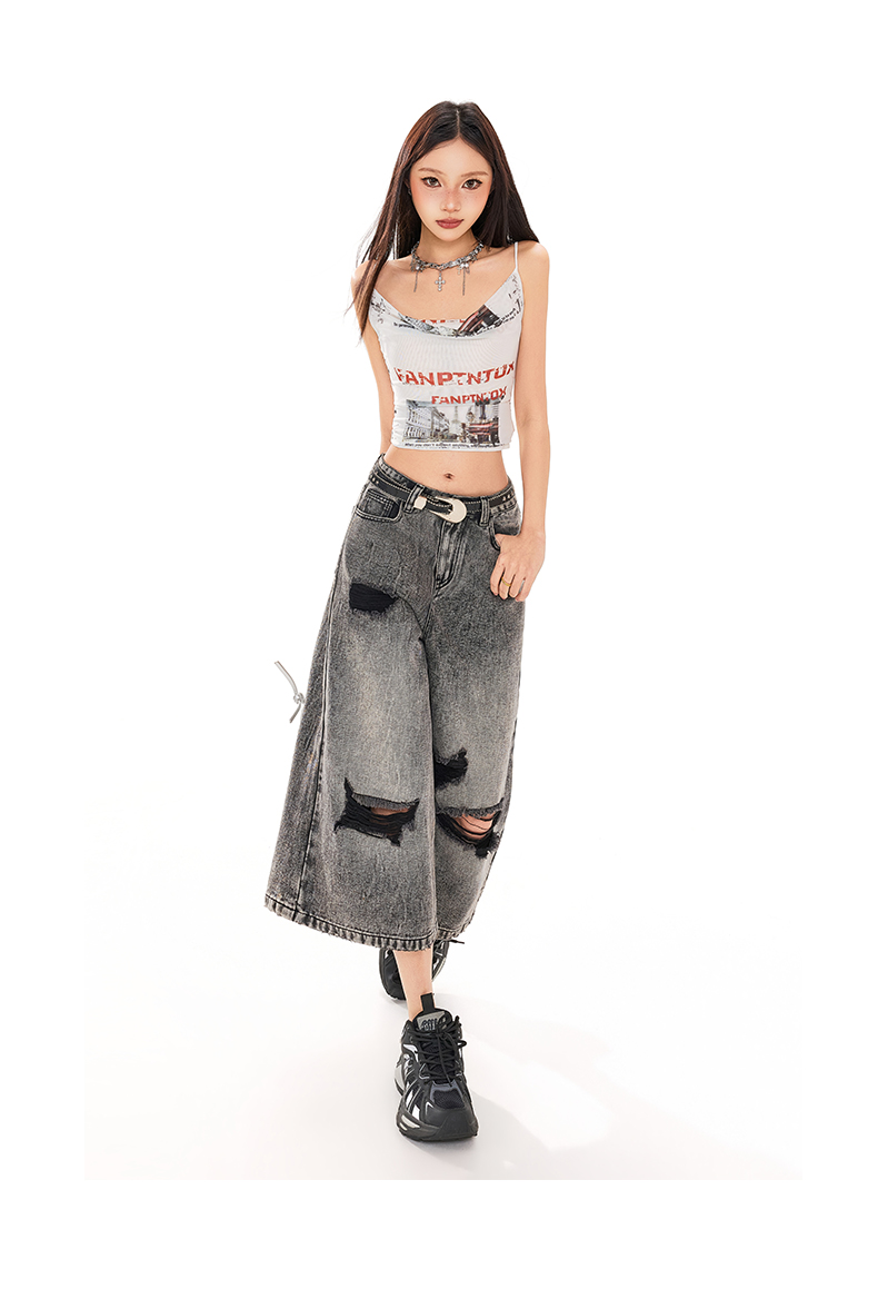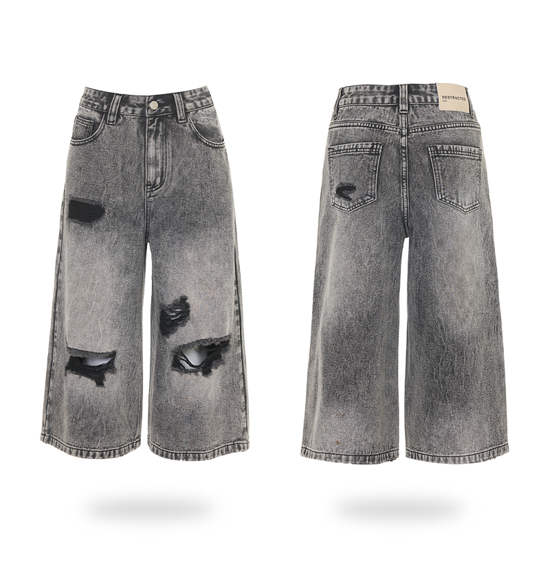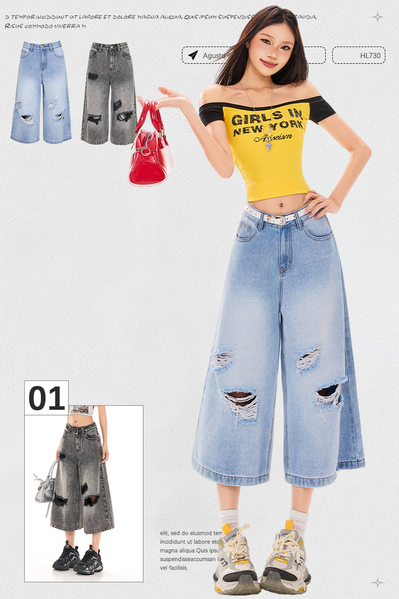 실사 26 여름 캐주얼 디자인 센스 찢어진 부분 청바지 여성 패션 트렌드 다용도 루즈핏 거친 가장자리 7 점 바지
