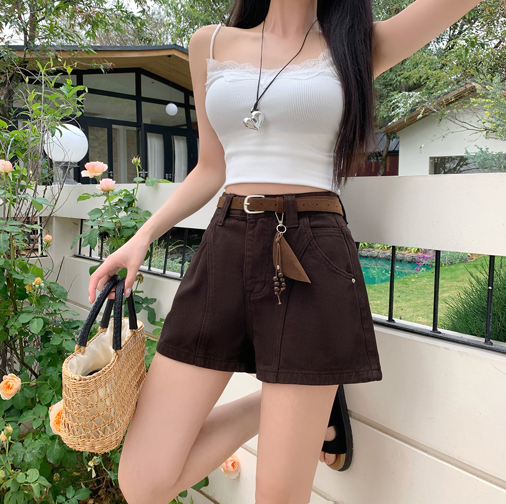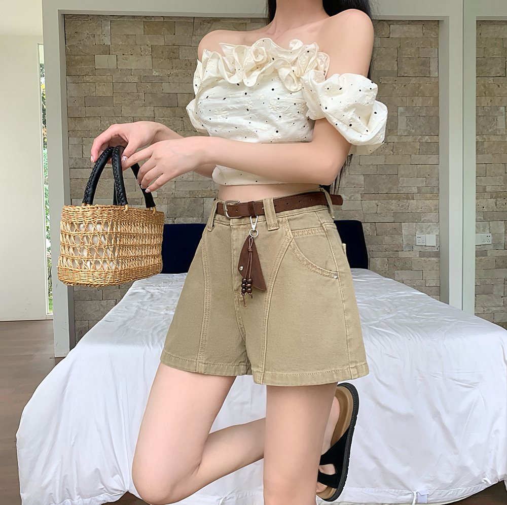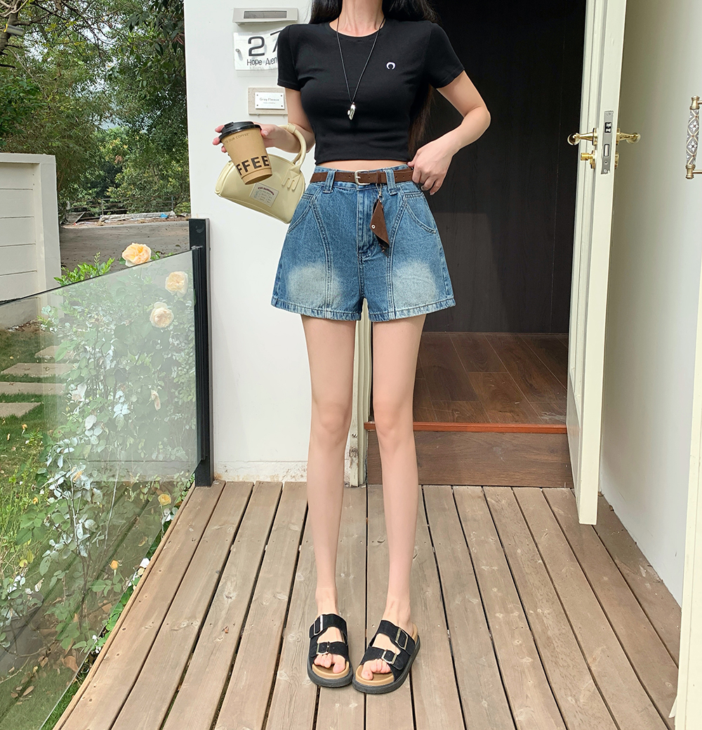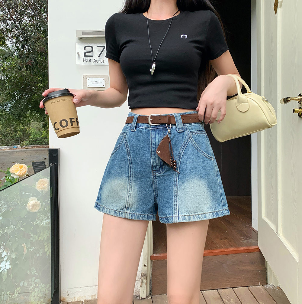 실사 한국 스타일 하이웨이스트 데님 반바지 여성 2026 봄 여름 새로운 패션 외국 가스 연령 감소 한 마디 넓은 다리 핫 바지