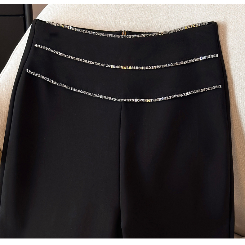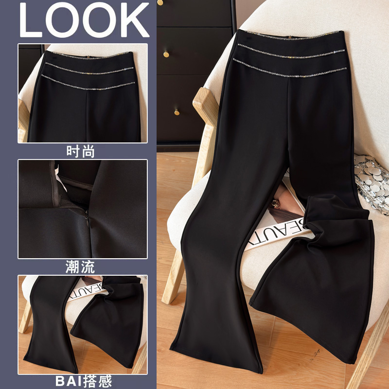 봄 설정 실버 임베디드 기사 나팔 바지 작은 검은 색 바지 하이웨이스트 부츠컷 호스 슈 바지 다용도 캐주얼 바지 몸매 가꾸기 리프트 엉덩이 바지