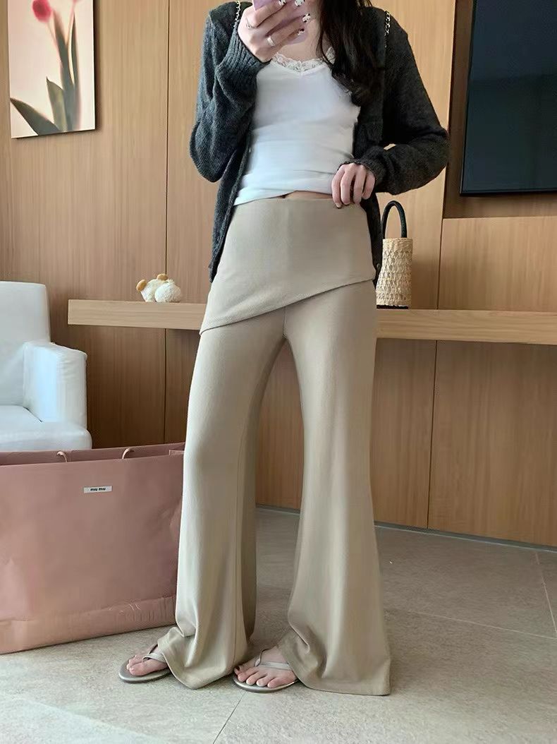 자오 이슬 생각하기 같은 단락 수리 높이 폭탄 부츠컷 캐주얼 방귀 커튼 바지 여성 루즈핏 운동 출퇴근 스트레이트 롱 바지