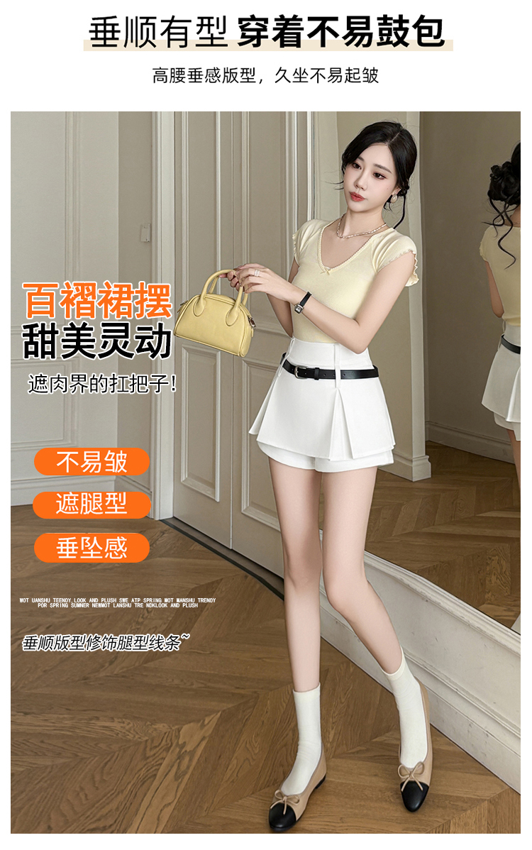 화이트 플리츠 치마바지 여성 2026 새로운 폭발 여름 하이웨이스트 짧은 바지 작은 키 슬림해 보이는 한 마디 반신 스커트