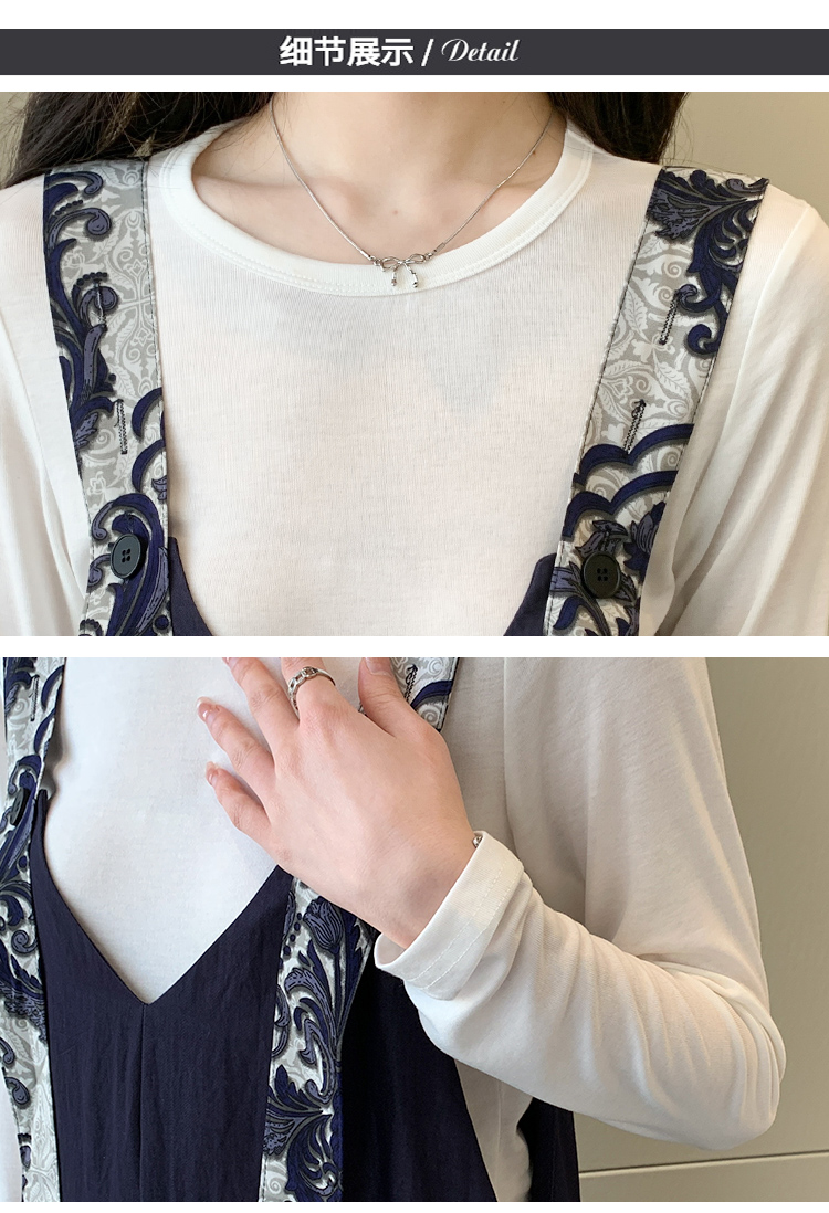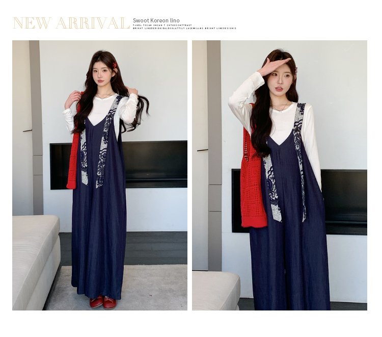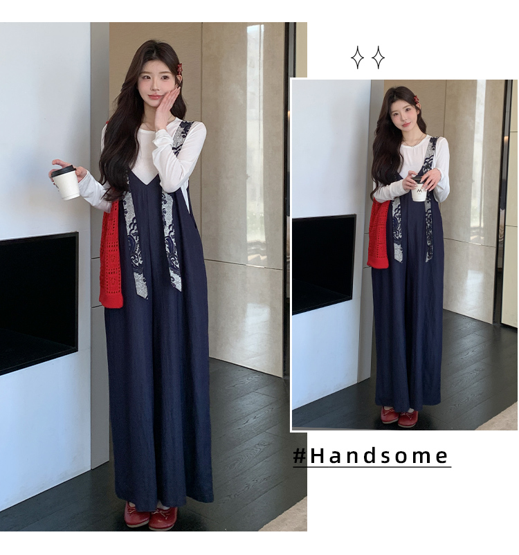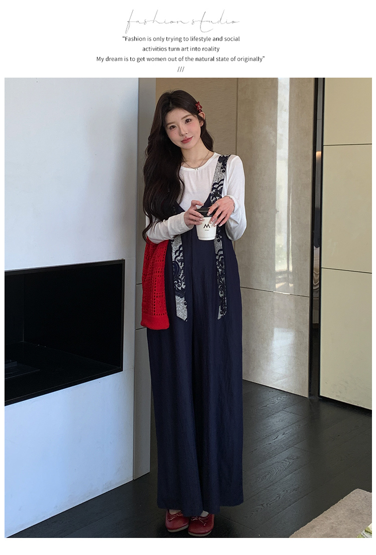 실사 지금 봄 여름 달콤함 프린트 넓은 다리 멜빵 바지 맨위 투피스 세트 세트