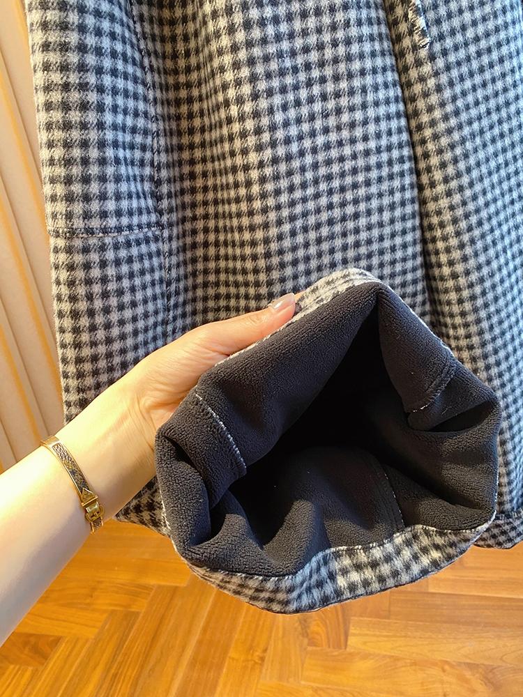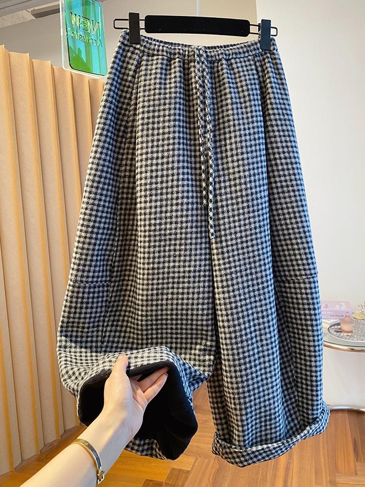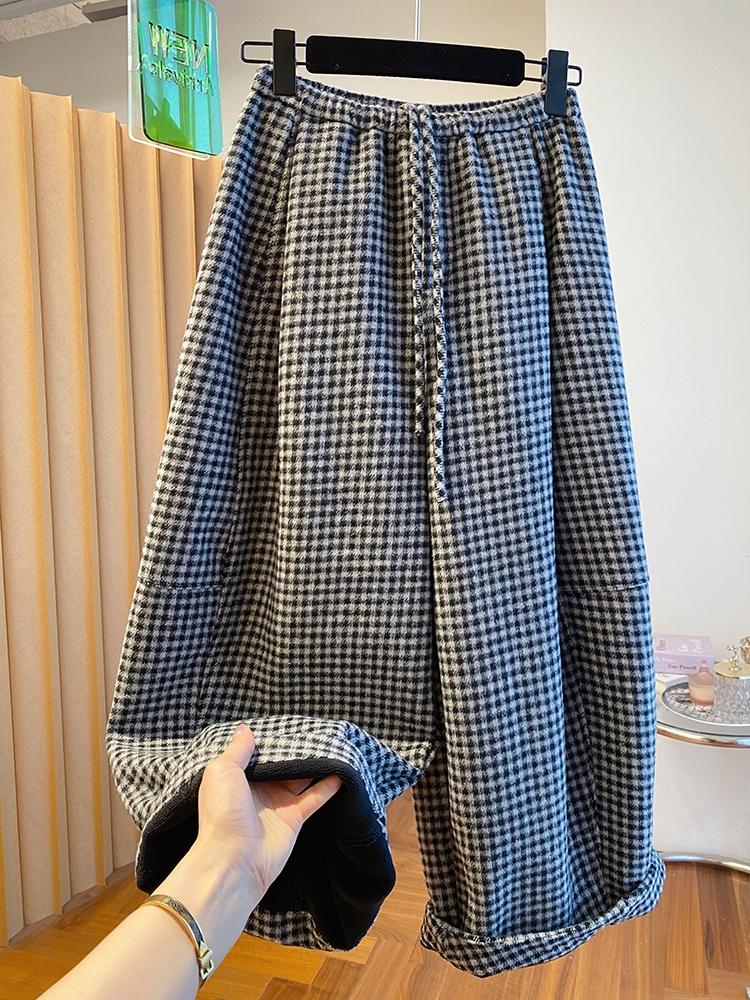 고급 센스 털이 있고 두꺼운 체크무늬 와이드 레깅스 바지 2025 새로운 루즈핏 캐주얼 스트레이트 팬츠 다용도 8 점 바지 겨울