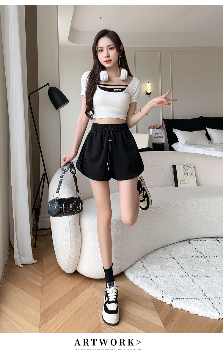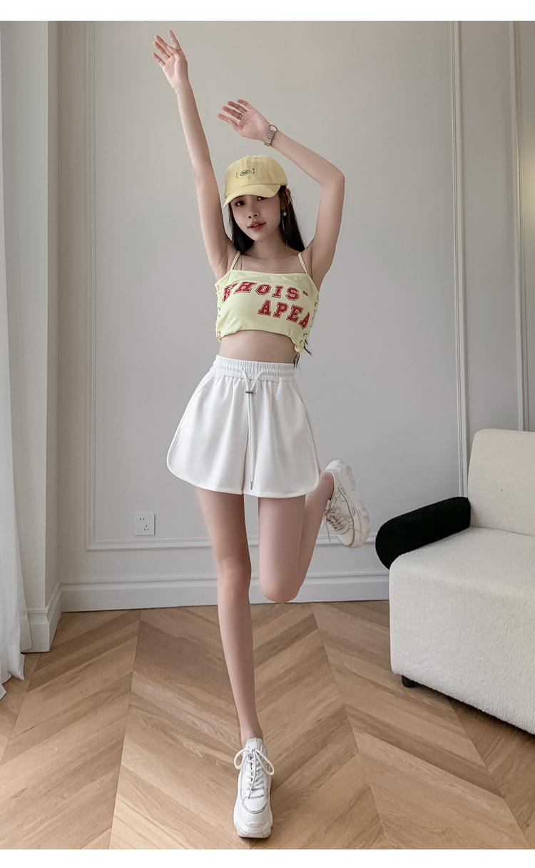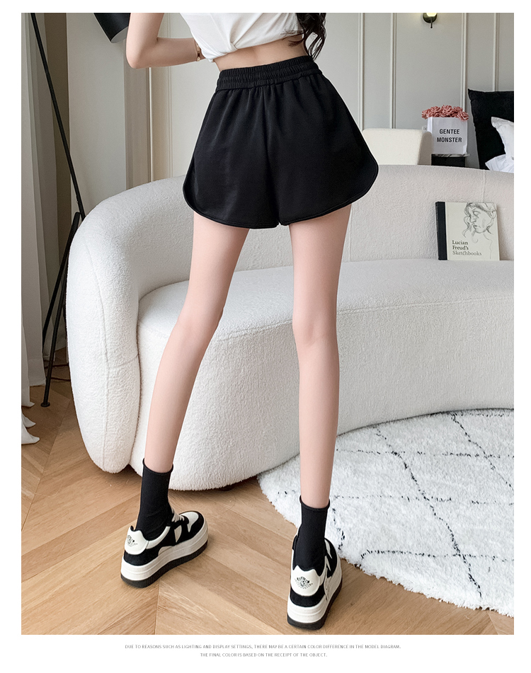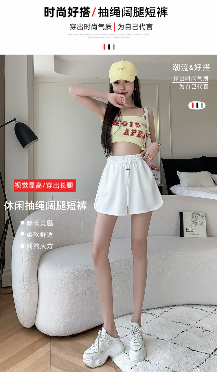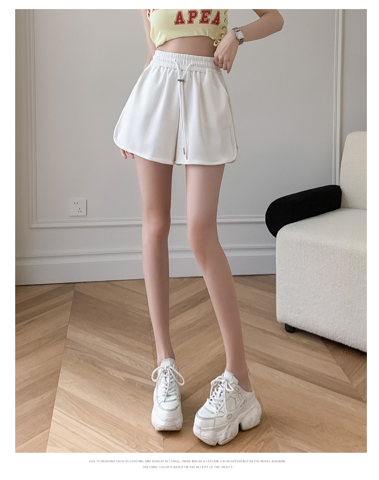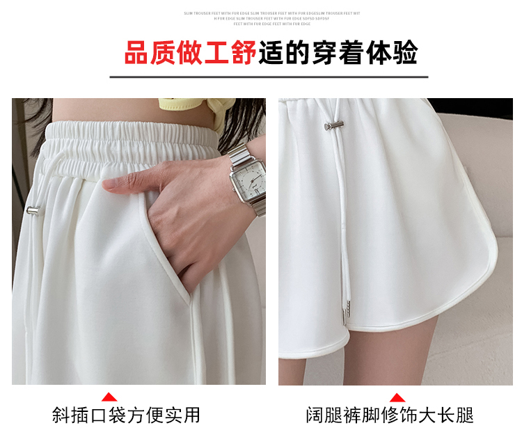 실사 봄 새로운 운동 바지 다용도 허리밴드 와이드 레그 팬츠 하이웨이스트 얇은 스타일 핫 바지 루즈핏 여성 반바지