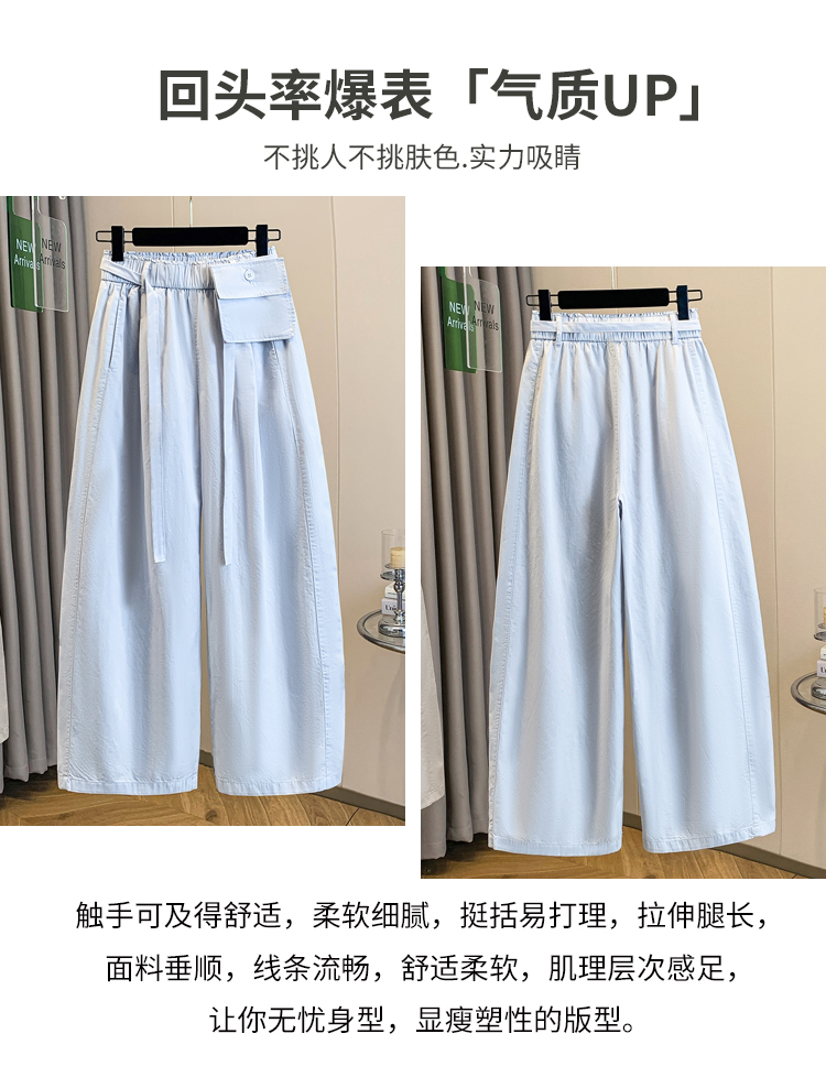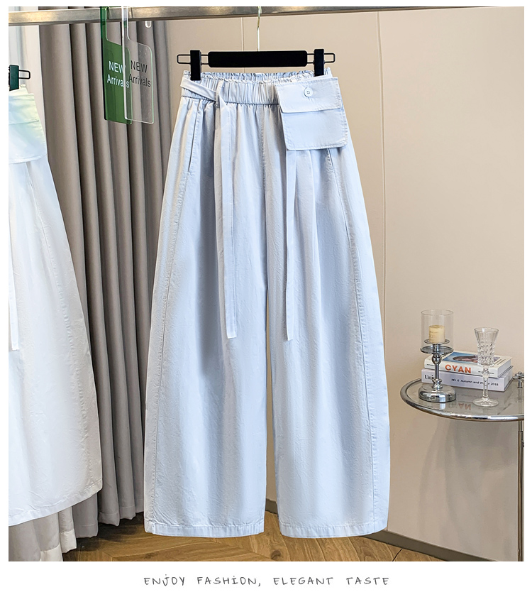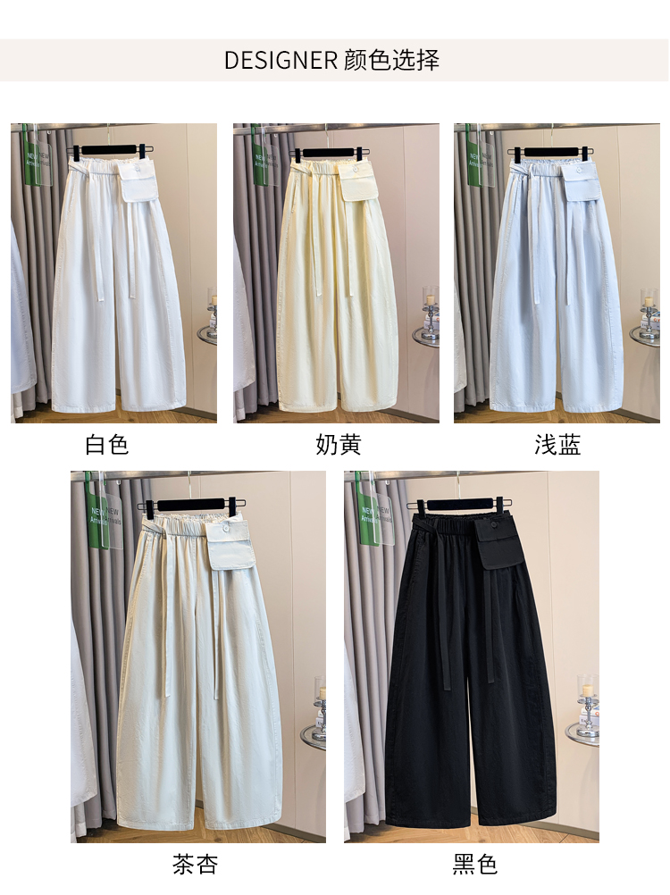 실사 2026 여름 새로운 높은 품질 워시 물 면 바지 탈착식 주머니 와이드 레그 팬츠 루즈핏 9 포인트 하렘 바지