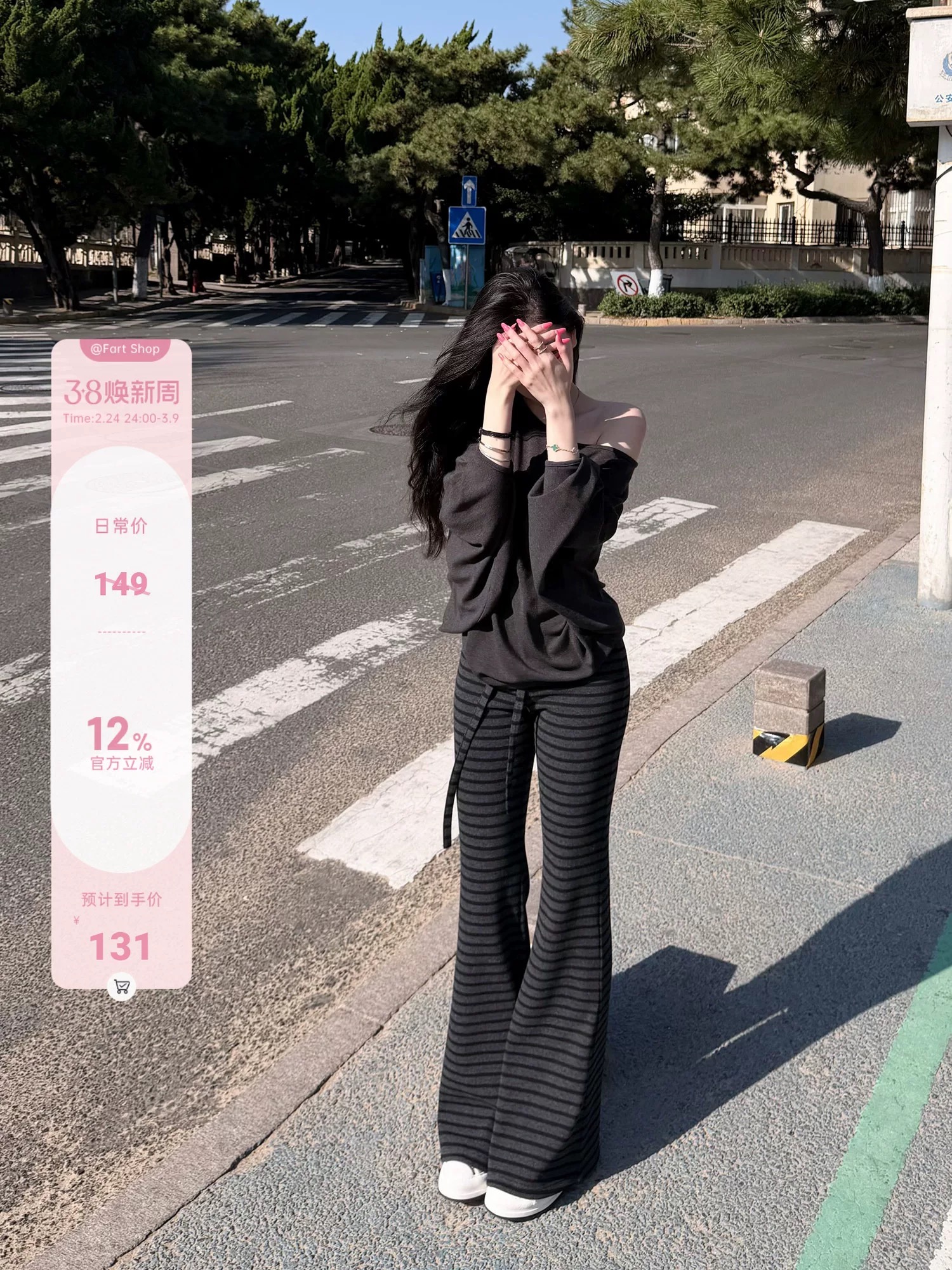fart shop 일본식 느슨함 블랙 회색 스트라이프 얇은 플러시 플레어 바지 가을 펌프 로프 레이스업 바닥 청소 긴 바지