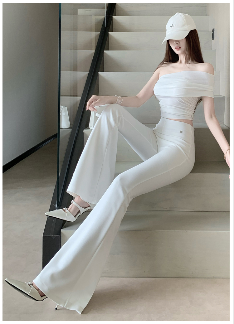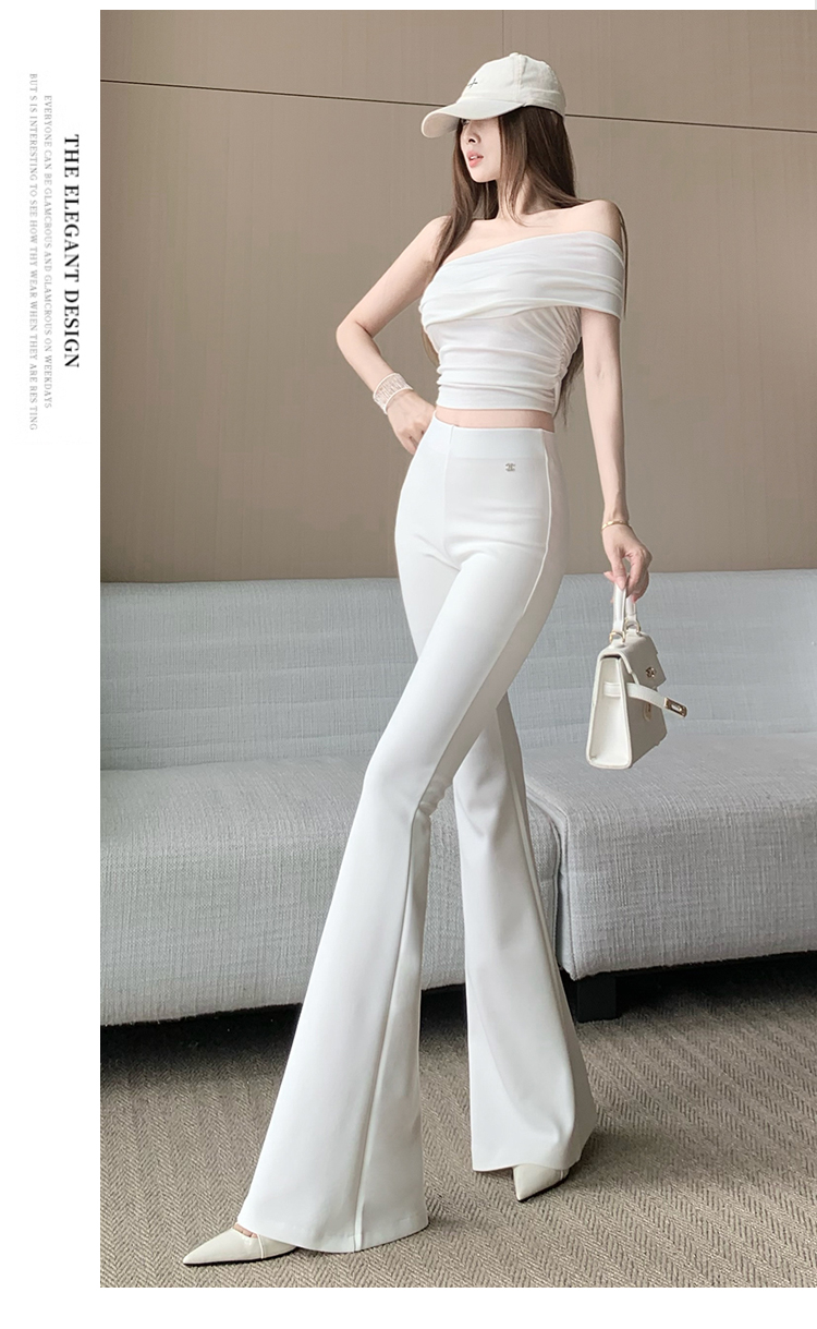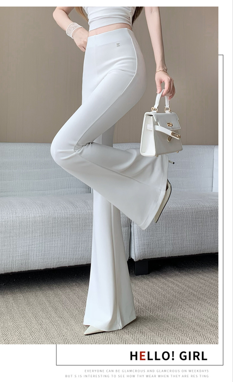화이트 부츠컷 정장 바지 여성 봄 여름 2026 새로운 하이웨이스트 도루 센스 슬림해 보이는 몸매 가꾸기 나팔 바지 캐주얼 긴 바지