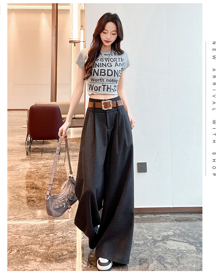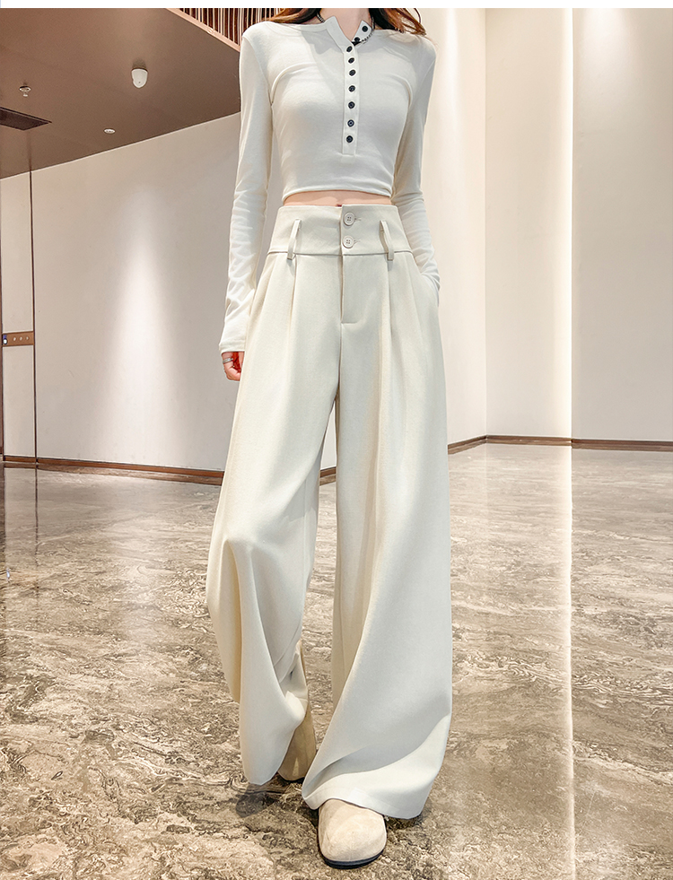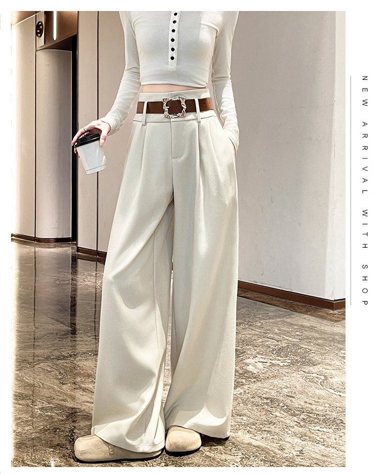 살구 색상 정장 와이드 레깅스 바지 여름 2026 얇은 스타일 하이웨이스트 슬림해 보이는 도루 센스 루즈핏 캐주얼 스트레이트 바닥 청소 바지